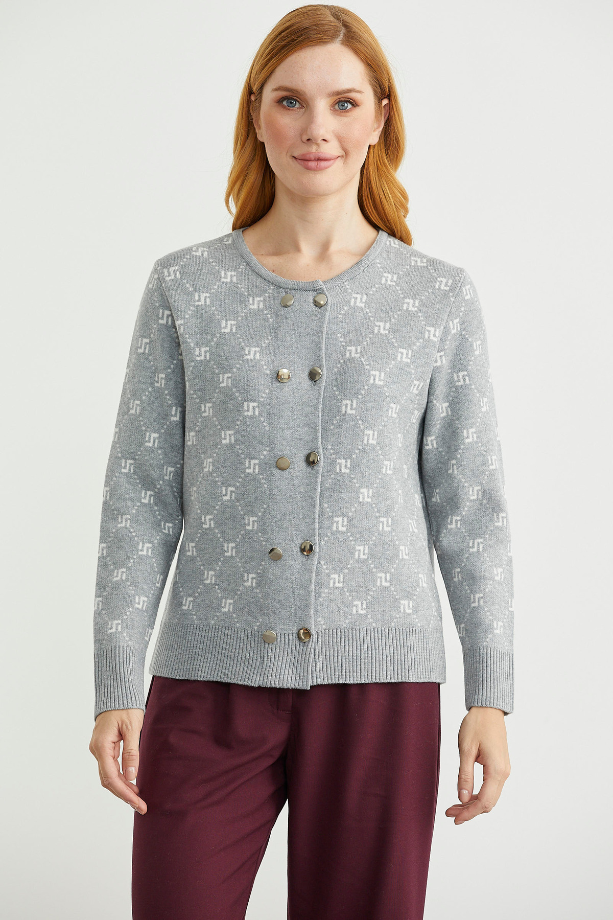 Motif Detaylı V Yaka Yünlü Triko Kazak - Gül Motif Detaylı V Yaka Yünlü Triko Kazak - Gül 24K2115-32507.0001 L