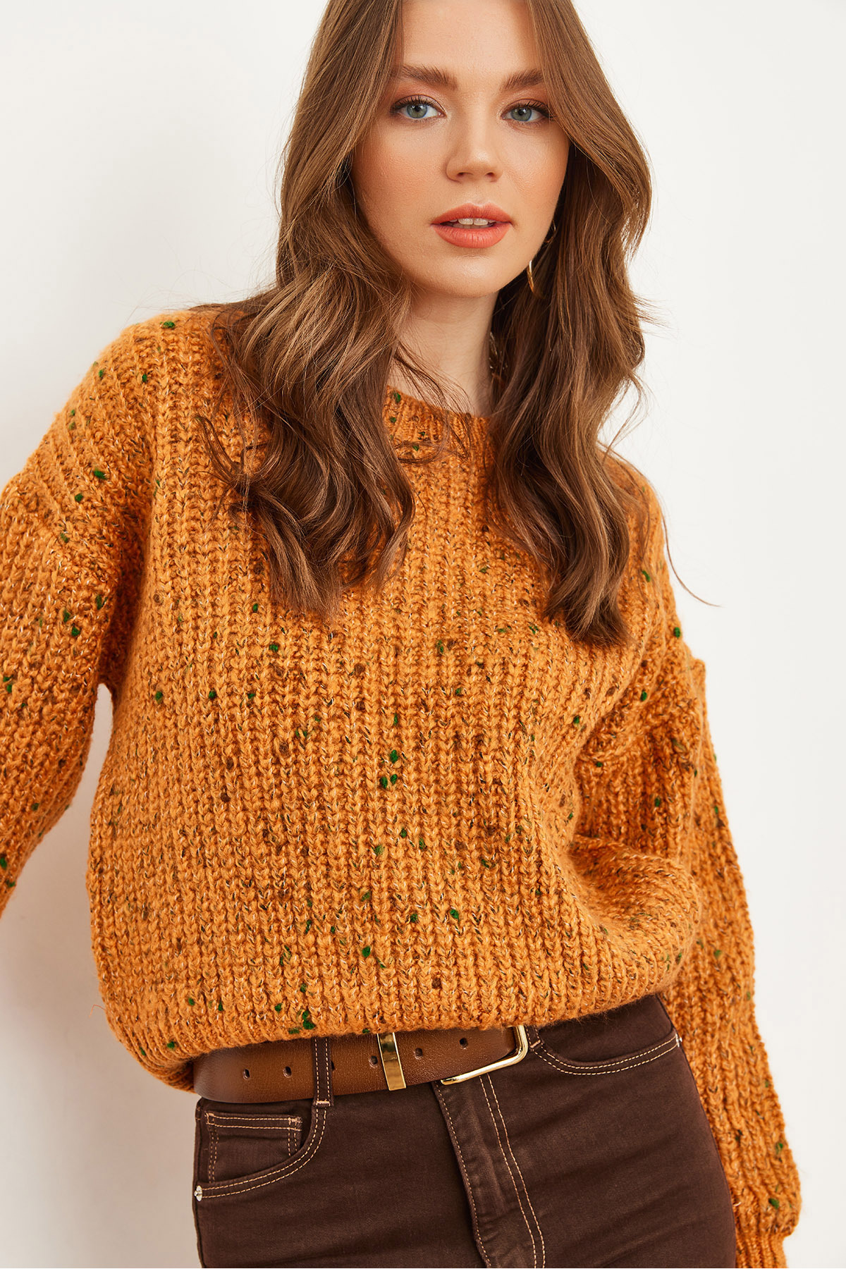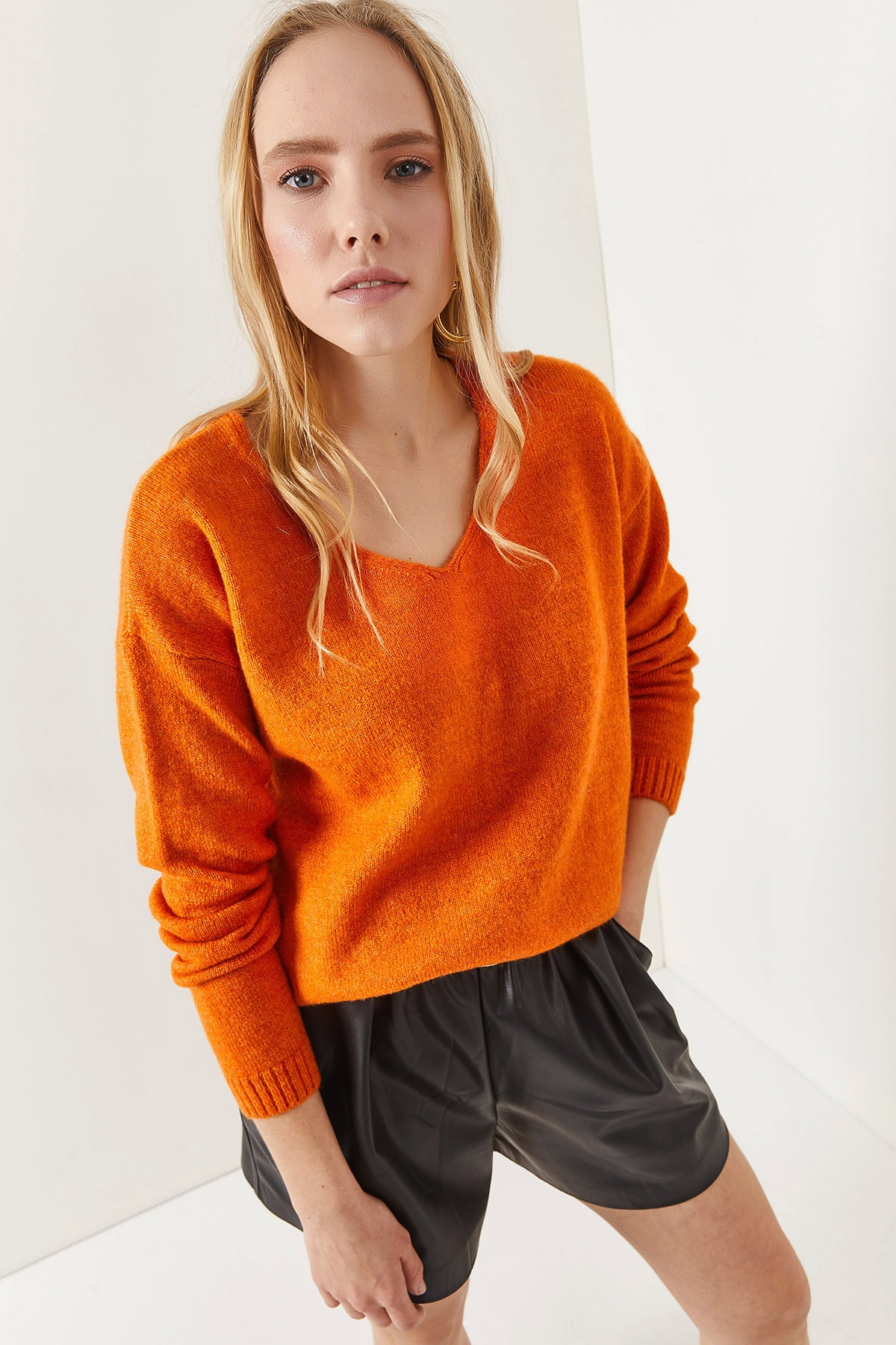 Tam Balıkçı Yaka Düğmeli Triko Kazak - Oranj Tam Balıkçı Yaka Düğmeli Triko Kazak - Oranj 21K2115-32325.0001 M