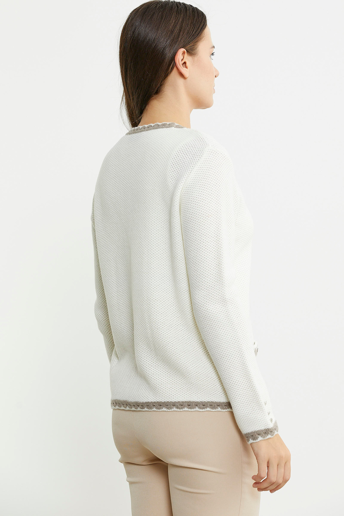 Dilimli Yaka Detaylı Kısa Yün Triko Hırka - Kemik Dilimli Yaka Detaylı Kısa Yün Triko Hırka - Kemik 24K2112-34486.0001 L
