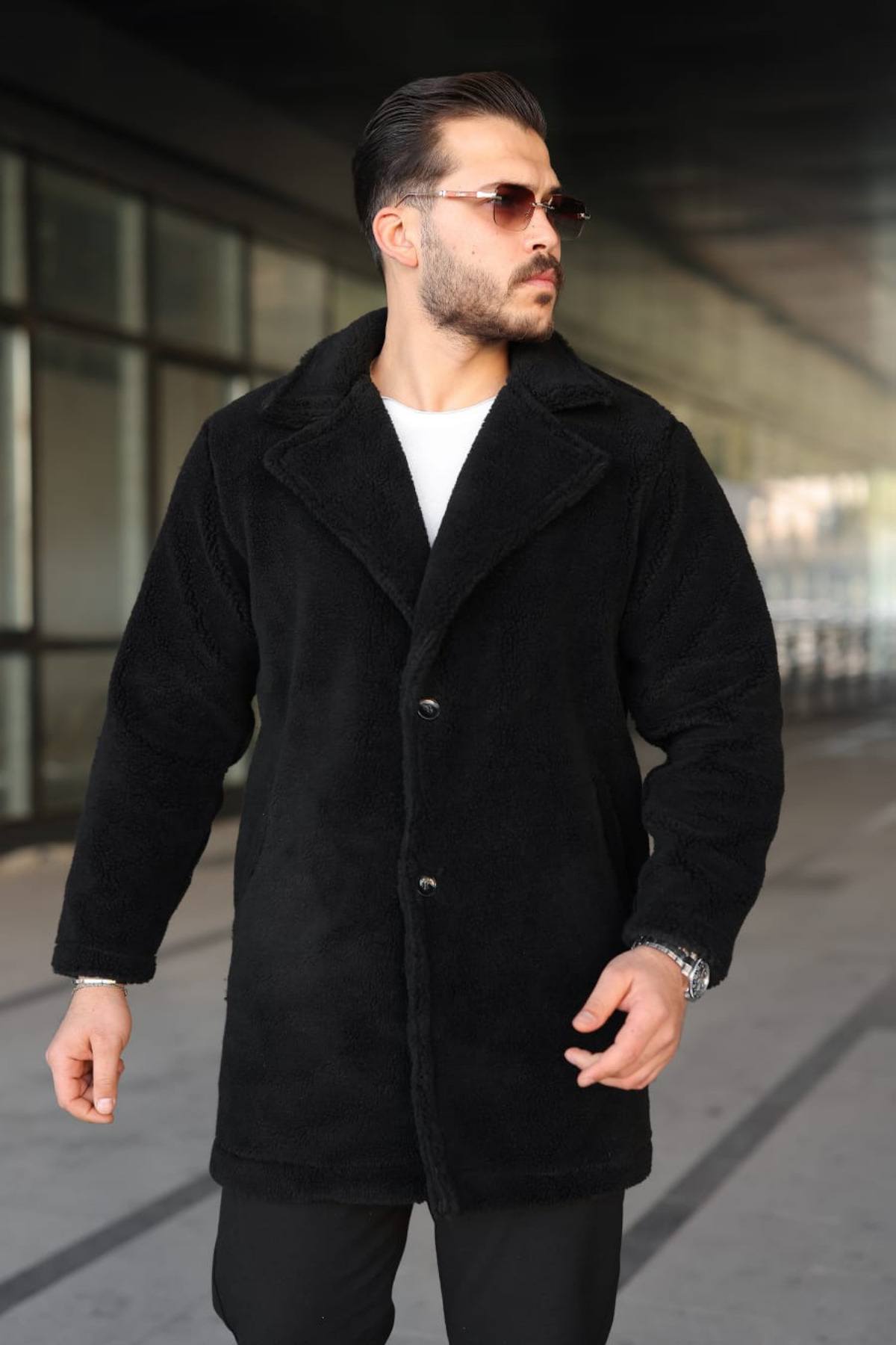 Erkek Dar Kesim Kürklü Kaşe Kaban Siyah Erkek Dar Kesim Kürklü Kaşe Kaban Siyah WK08 2XL
