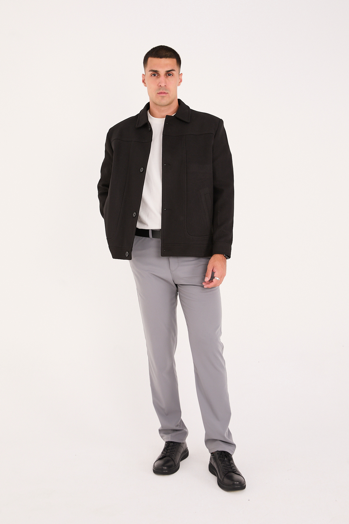 Erkek Dar Kesim Kruvaze Kaşe Kaban Orta Gri Erkek Dar Kesim Kruvaze Kaşe Kaban Orta Gri WK10 2XL