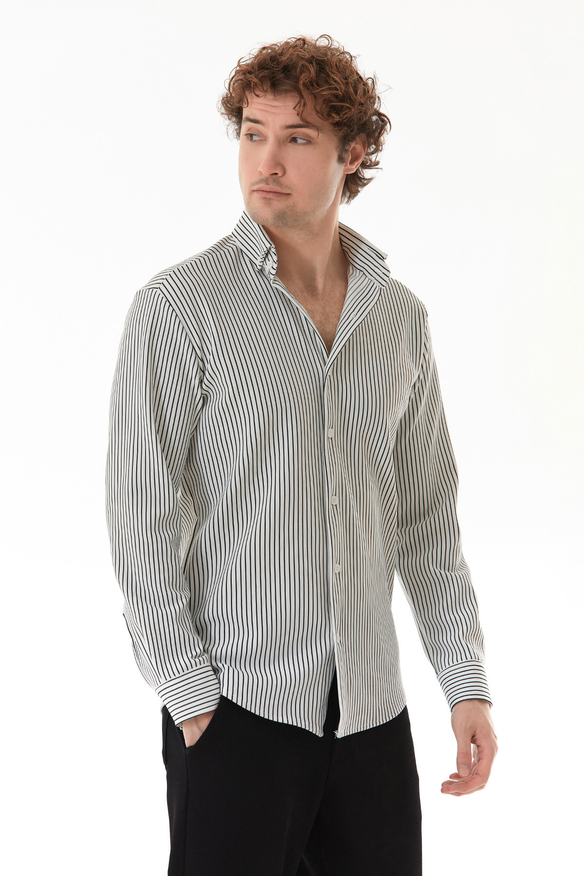 Slim Fit Gömlek Yarım İtalyan Yaka Düğmeli Pamuklu Slim Fit Gömlek Yarım İtalyan Yaka Düğmeli Pamuklu 4SAM60082HW 2XL