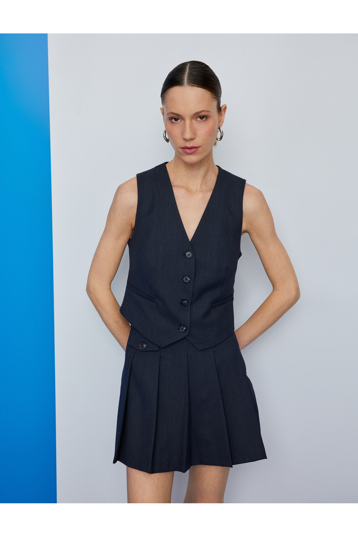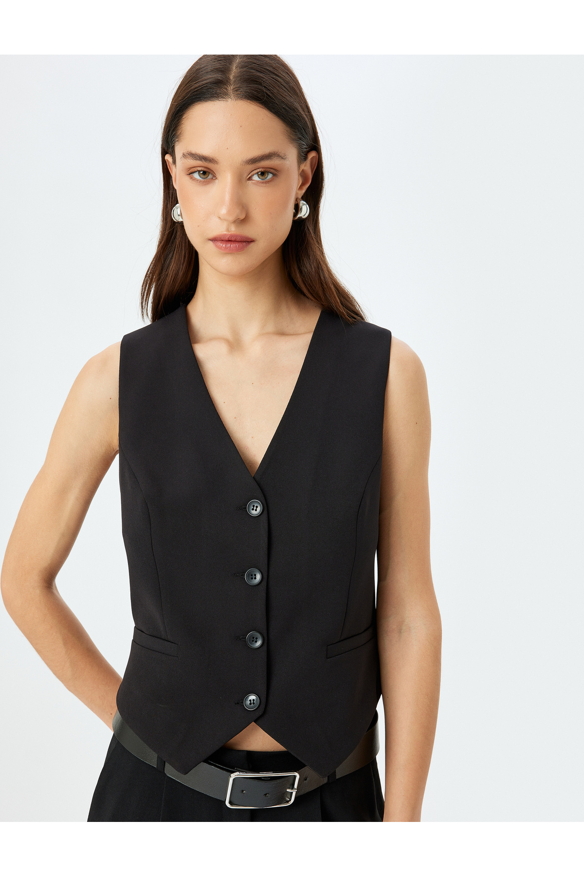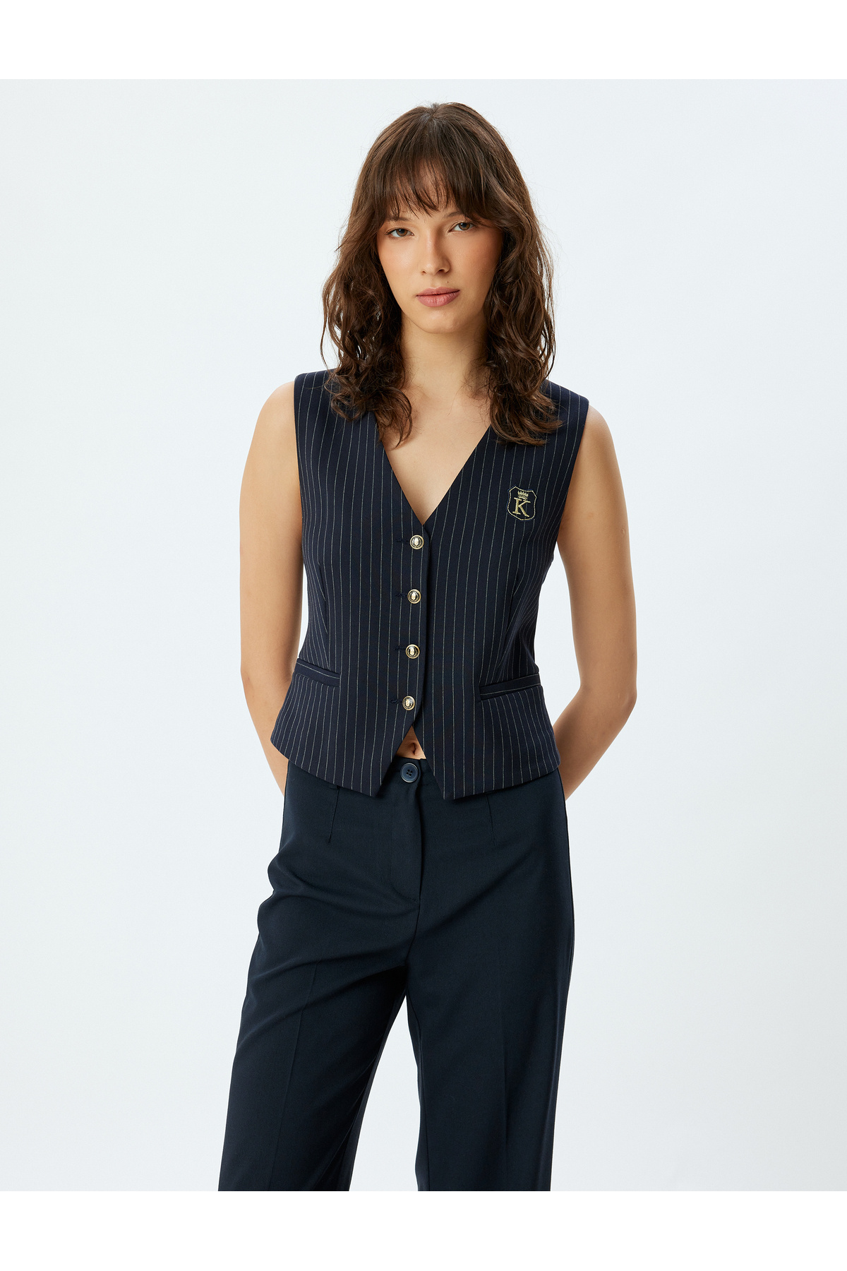 V Yaka Düğmeli Nakış Detaylı Yelek V Yaka Düğmeli Nakış Detaylı Yelek 5WAK20029UW 42