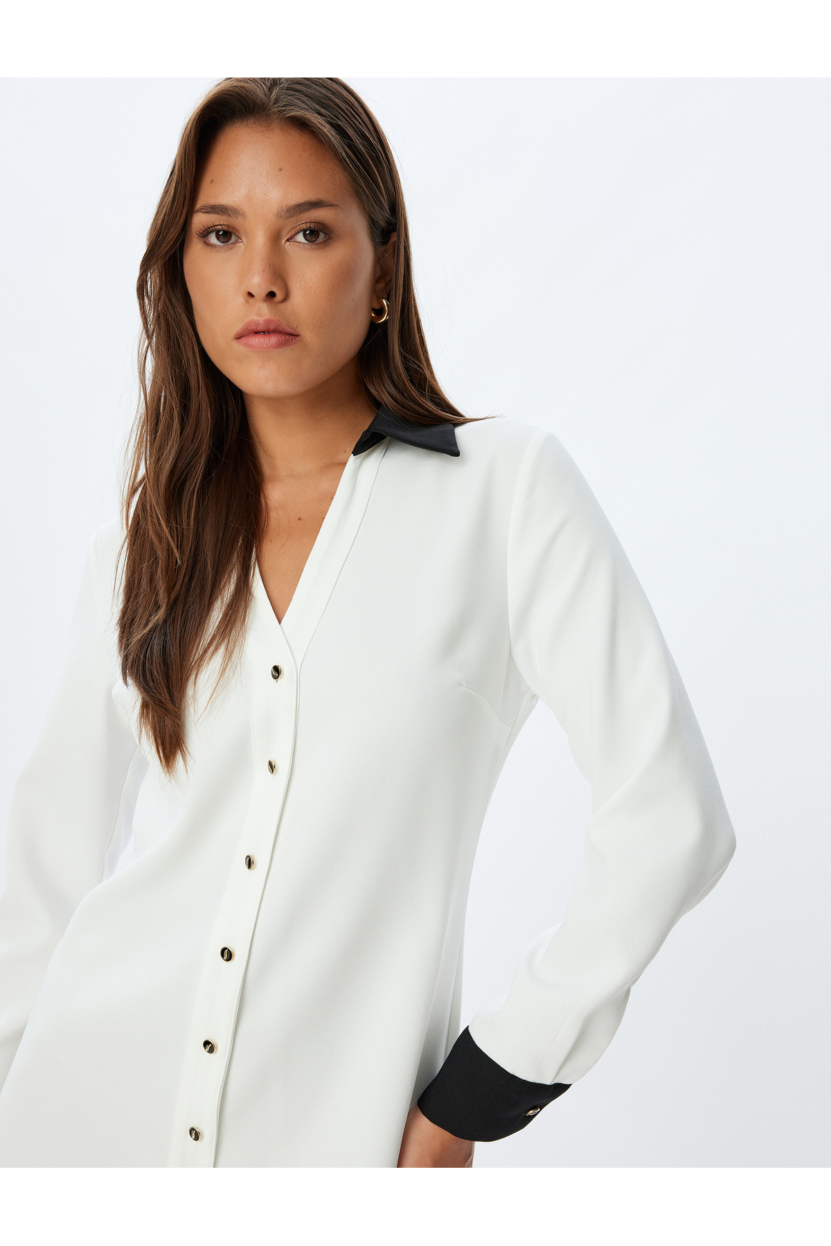 Mini Boy Renk Kontrastlı Uzun Kollu Gömlek Elbise Mini Boy Renk Kontrastlı Uzun Kollu Gömlek Elbise 5WAK80041UW 42
