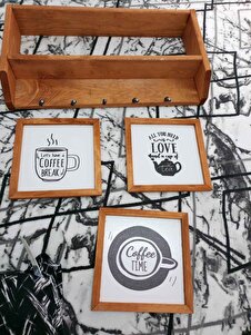 Kahve Köşesi Raflı Fincan Askılıklı Ahşap Tablo Seti Kahve Köşesi Raflı Fincan Askılıklı Ahşap Tablo Seti TL-UVÇER-236 60 x 40
