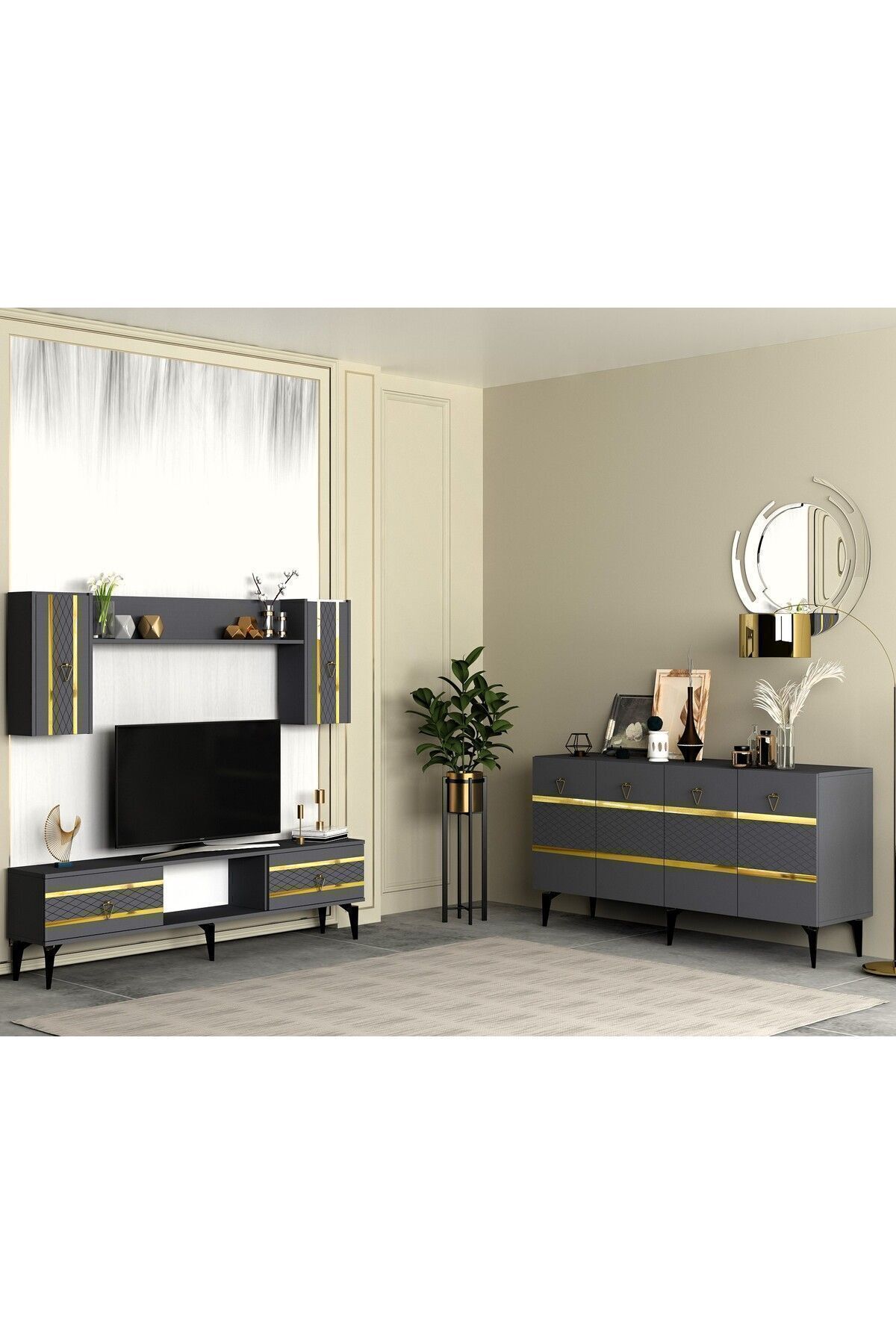 PELİNDH TV ÜNİTESİ ve KONSOL 2'Lİ SALON TAKIMI BEYAZ-ALTIN PELİNDH TV ÜNİTESİ ve KONSOL 2'Lİ SALON TAKIMI BEYAZ-ALTIN DHSTKM9023 تک سایز