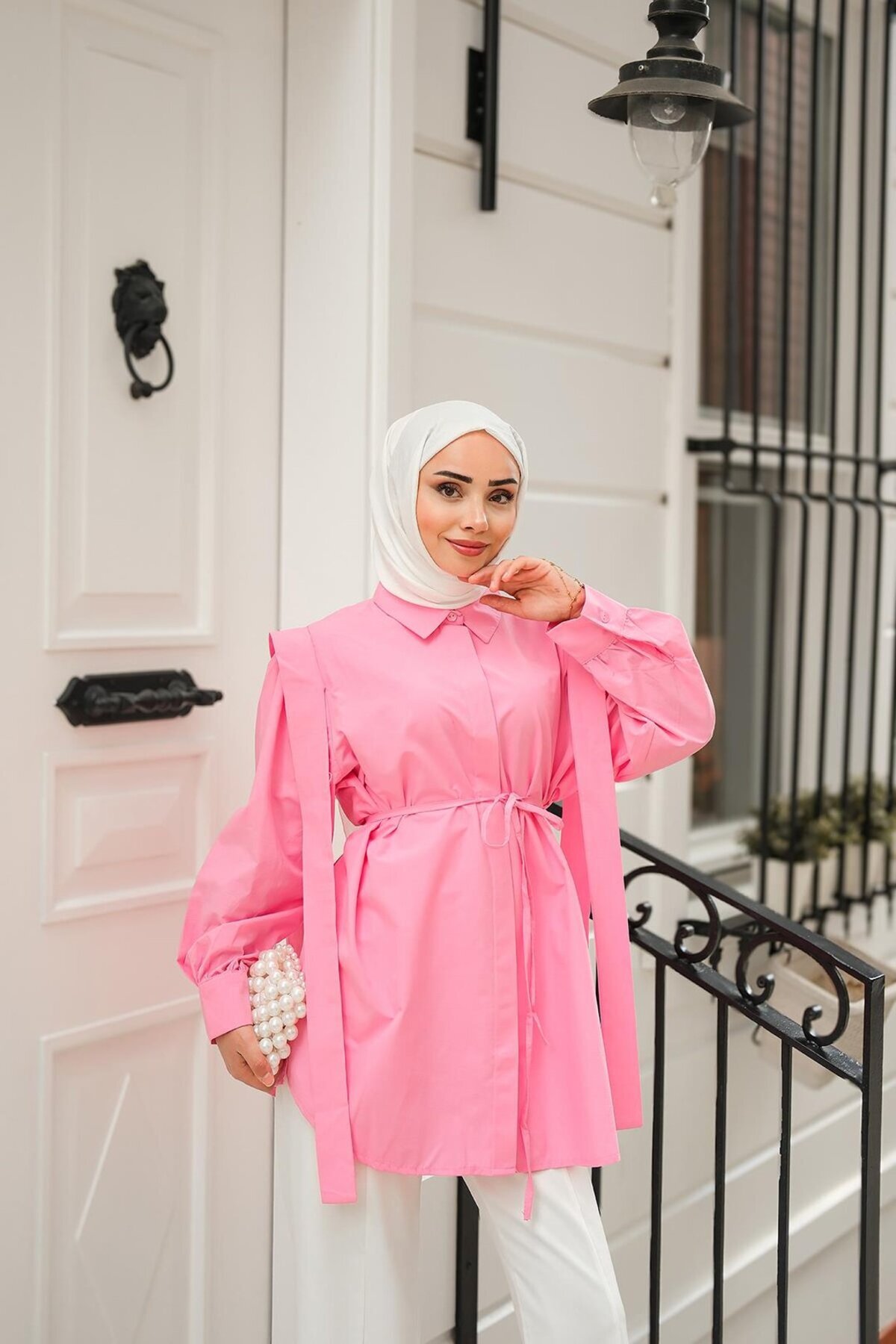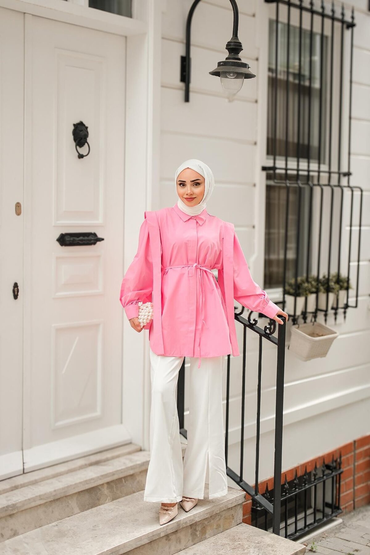 Pile Detay Önü Gizli Düğmeli Gömlek Koyu Pembe Pile Detay Önü Gizli Düğmeli Gömlek Koyu Pembe 182-0045 L/XL