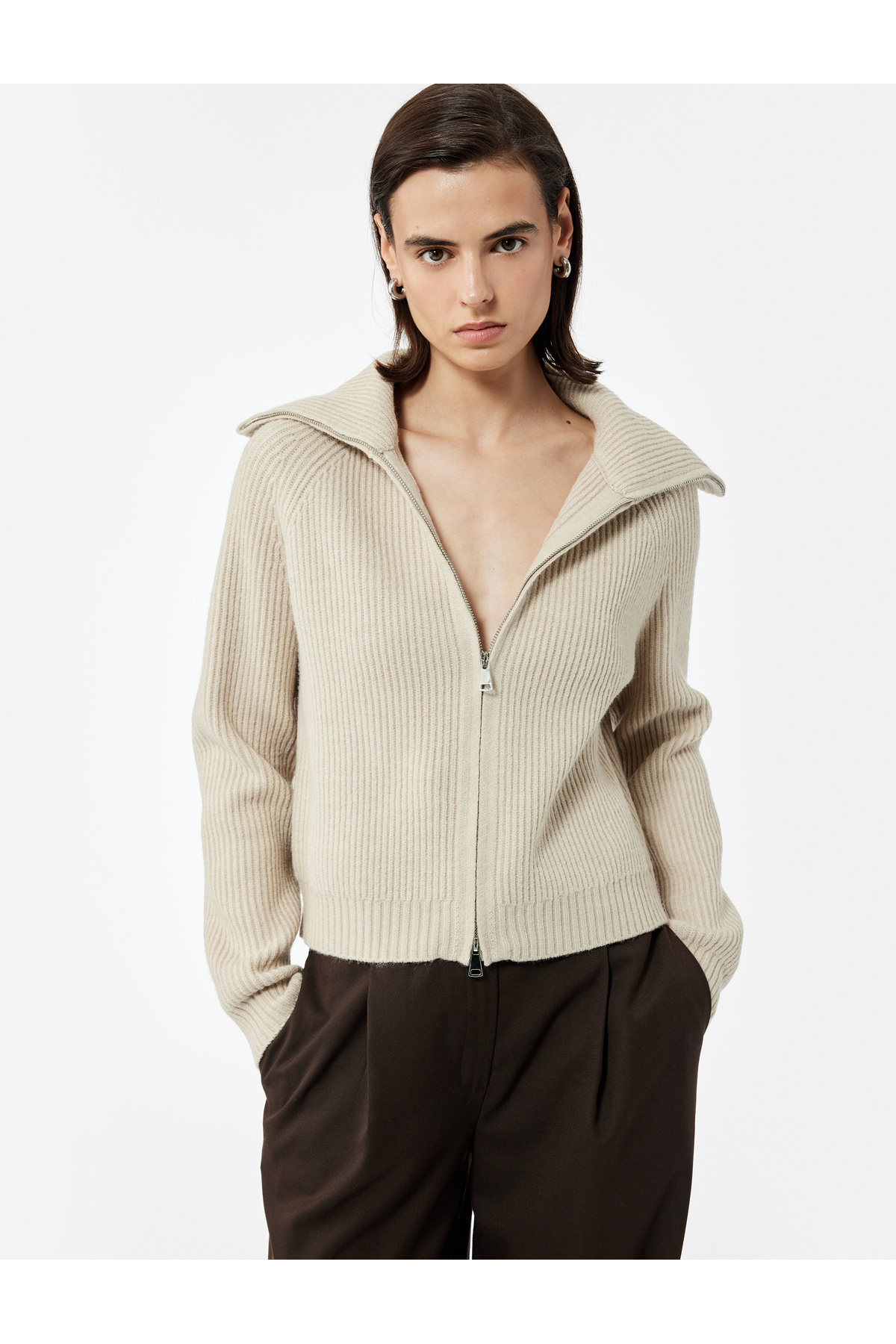 Triko Hırka Çift Taraflı Fermuarlı Dik Yaka Kaşkorse Fitilli Triko Hırka Çift Taraflı Fermuarlı Dik Yaka Kaşkorse Fitilli 5WAK90056HT XL