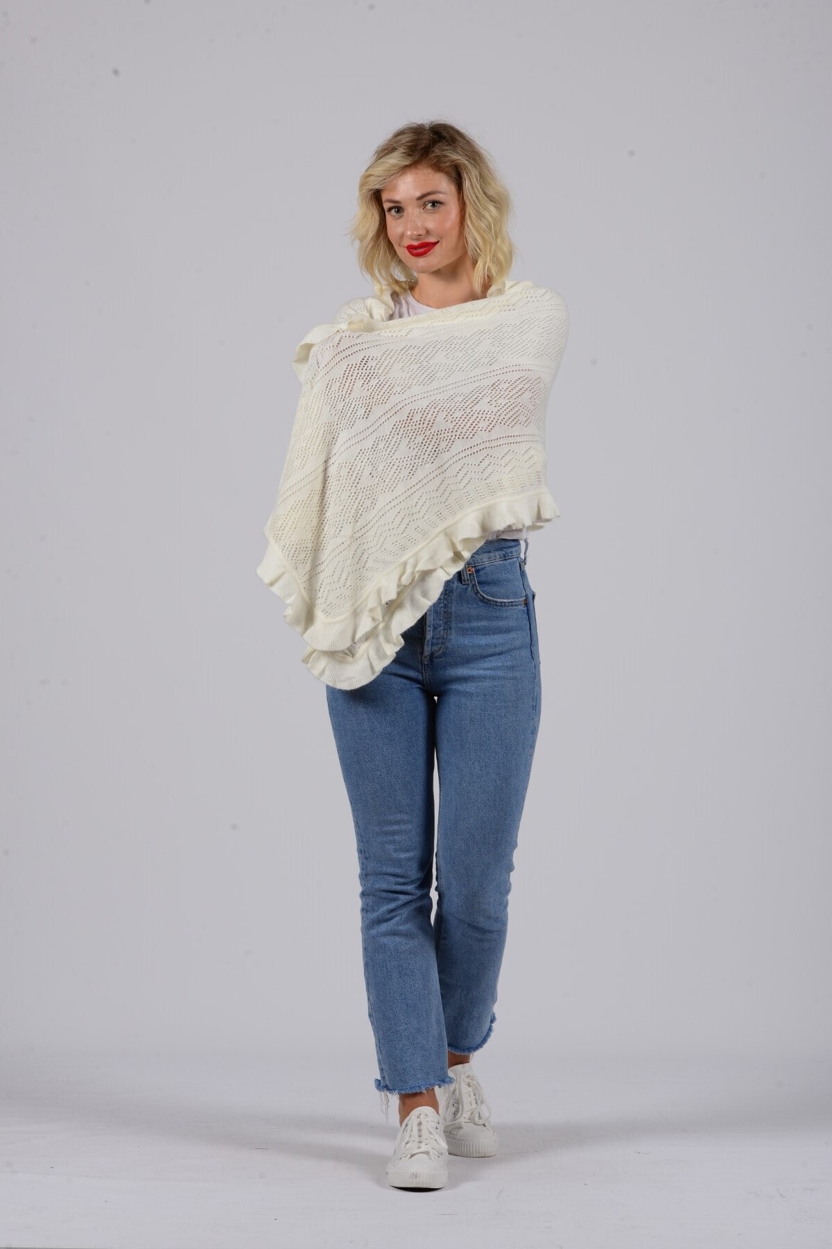 Mat Bulut Desenli Beyaz Şal Mat Bulut Desenli Beyaz Şal MBDS 70 x 190
