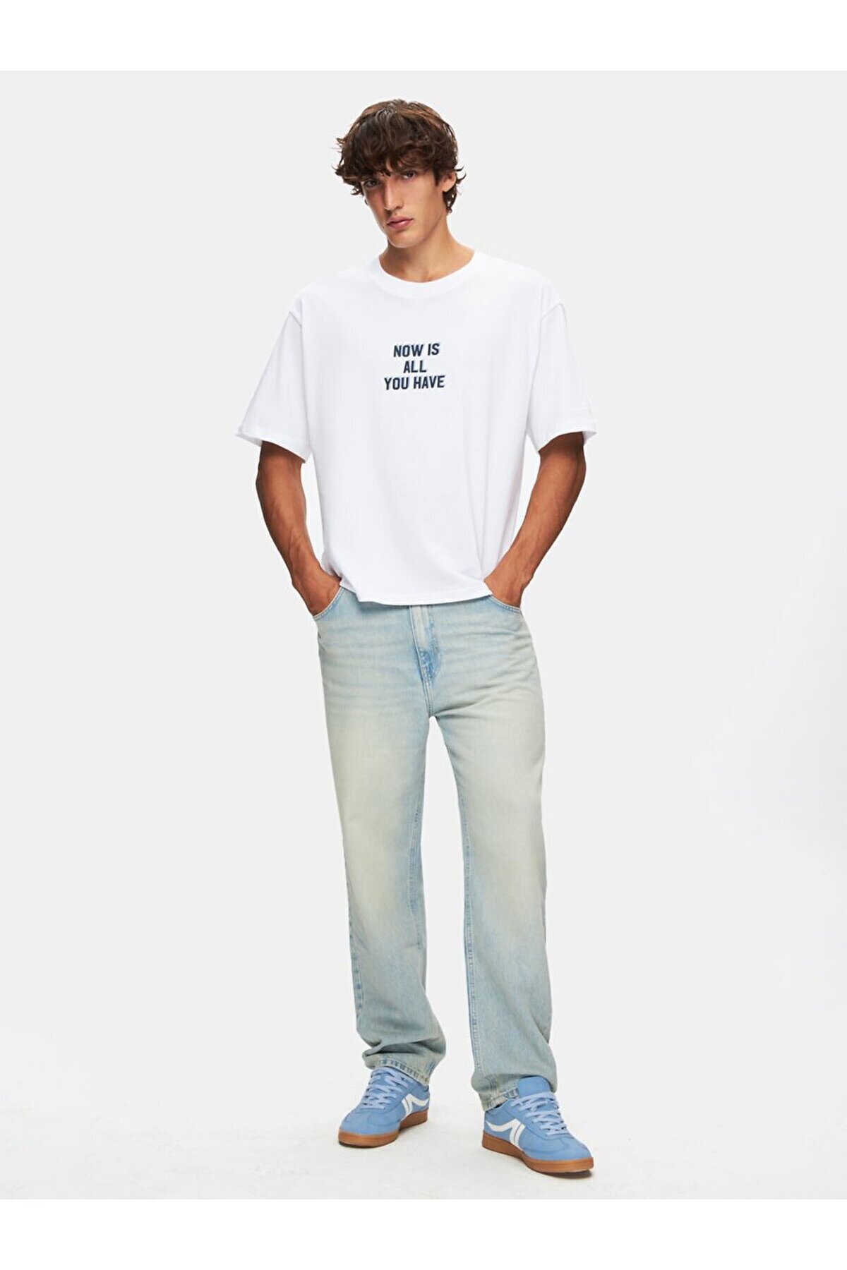 Sloganlı Sıfır Yaka Kısa Kollu Relaxed Fıt Beyaz T-shırt Sloganlı Sıfır Yaka Kısa Kollu Relaxed Fıt Beyaz T-shırt 01125840586143 2XL