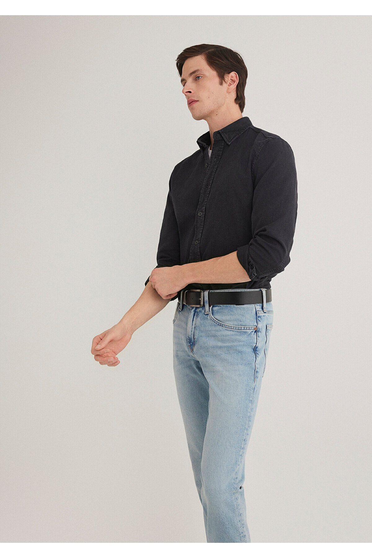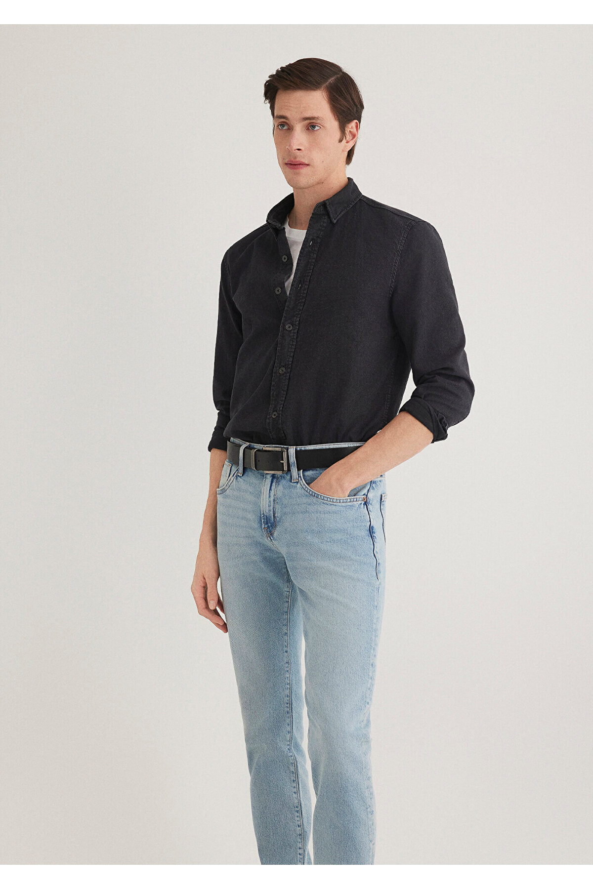 Siyah Denim Gömlek Slim Fit / Dar Kesim 0211128-900 Siyah Denim Gömlek Slim Fit / Dar Kesim 0211128-900 3XL