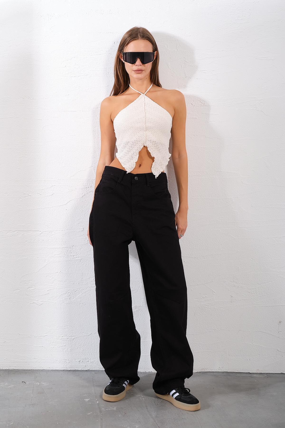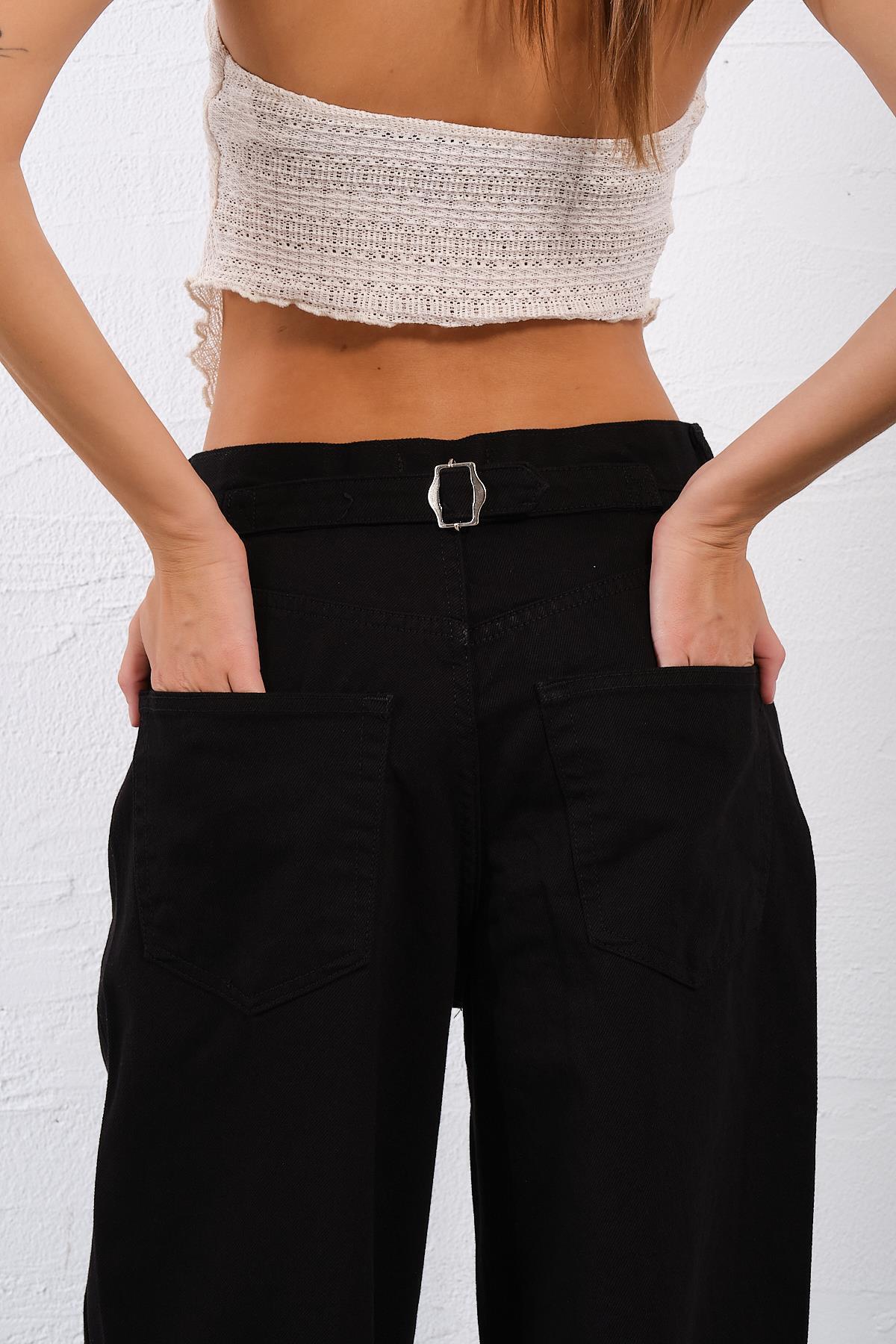 Siyah Toka Detaylı Bol Kesim Geniş Paça Rahat Baggy Jean Kot Salaş Kadın Pantolon @milano Siyah Toka Detaylı Bol Kesim Geniş Paça Rahat Baggy Jean Kot Salaş Kadın Pantolon @milano WN24WODMJE02011 42
