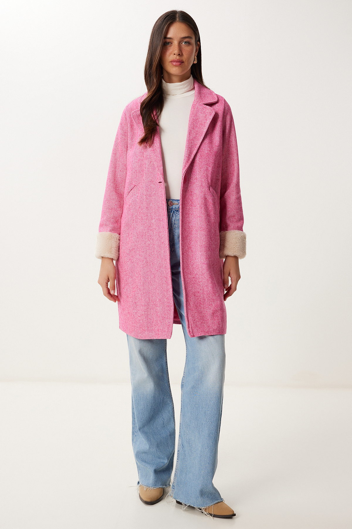 Kadın Pembe Kruvaze Yaka Kaşe Kaban DD01337 Kadın Pembe Kruvaze Yaka Kaşe Kaban DD01337 42
