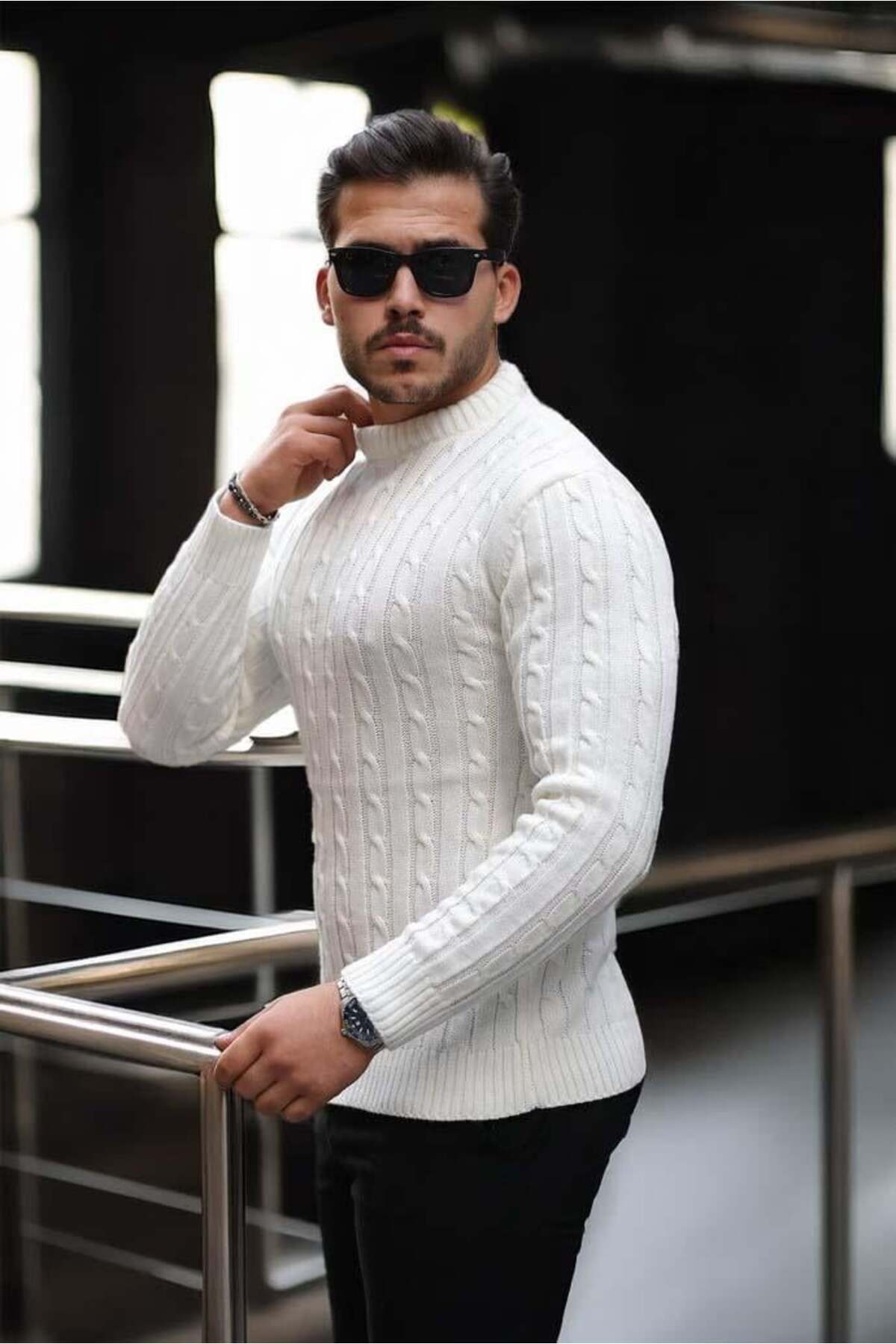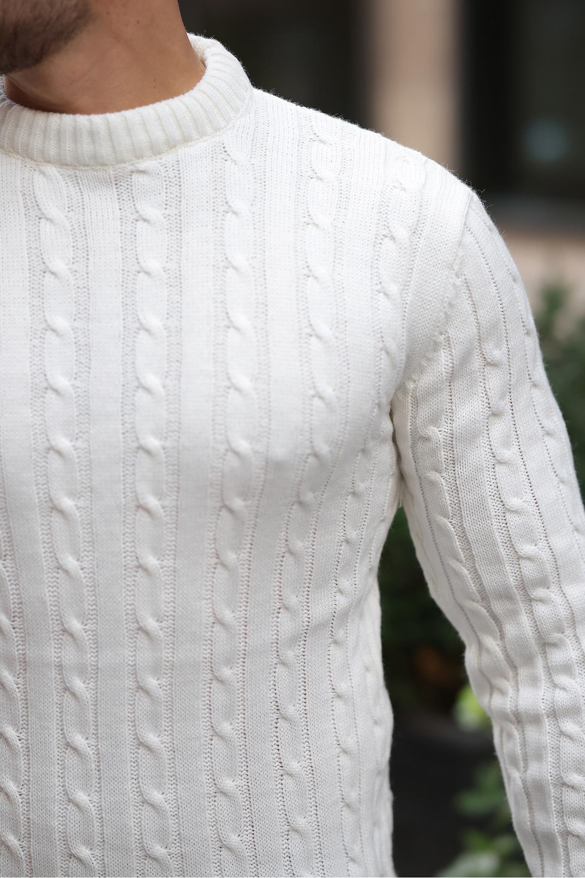 Saç Örgülü Bisiklet Yaka Erkek Triko Kazak - Ekru Saç Örgülü Bisiklet Yaka Erkek Triko Kazak - Ekru BK10017 XL