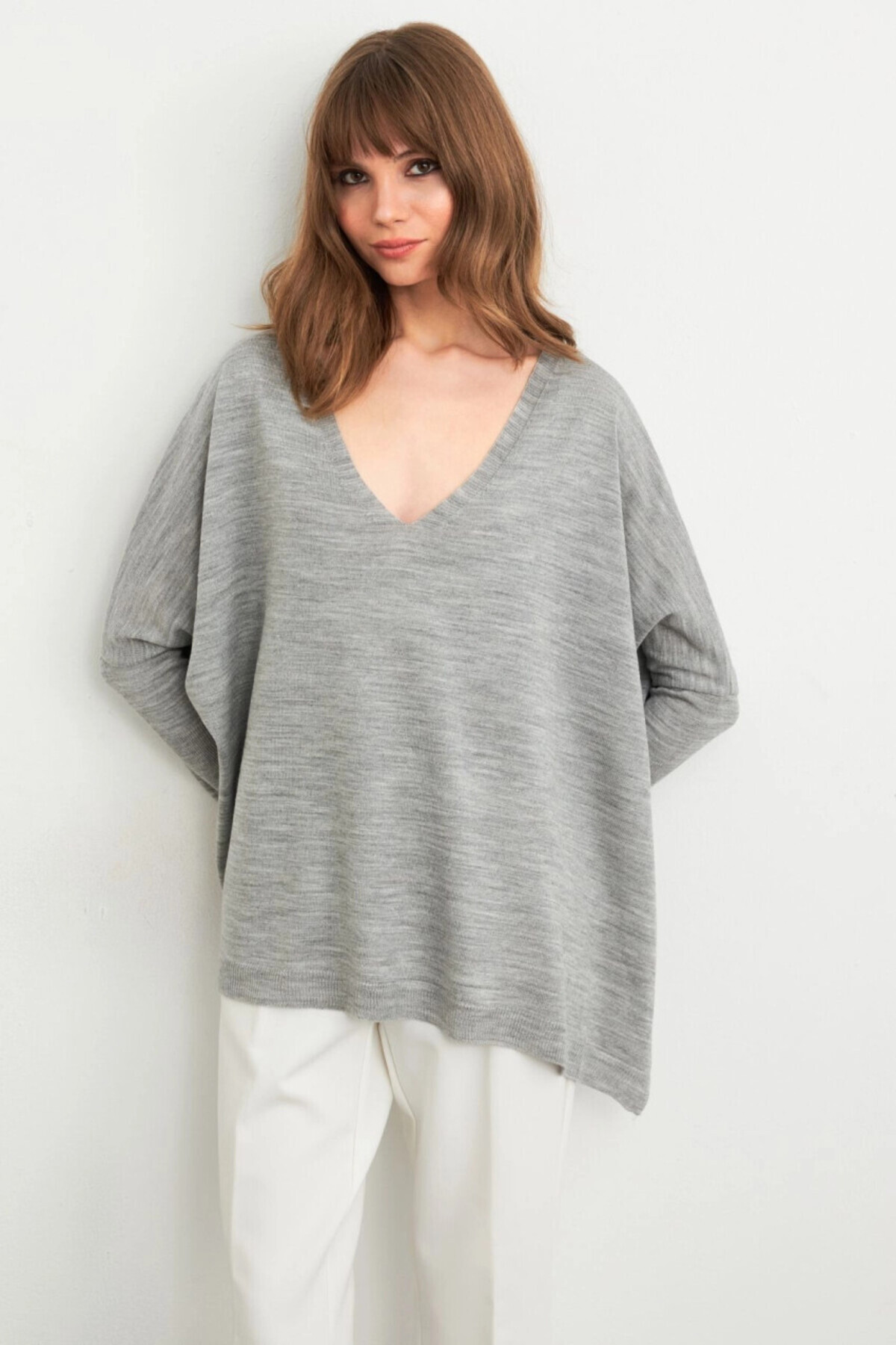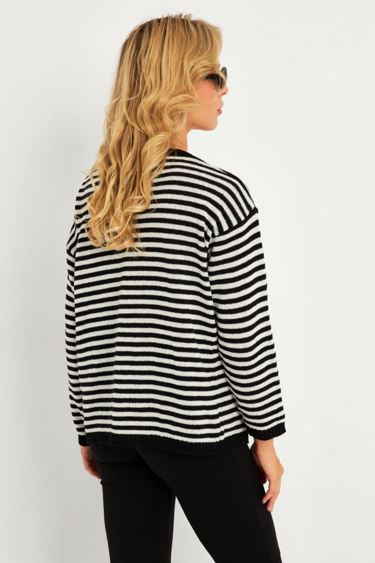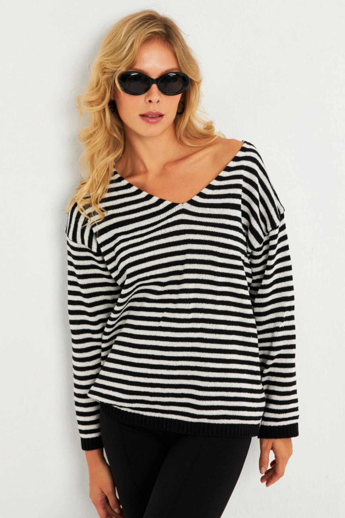 Kadın Ekru-Siyah V Yaka Triko Salaş Bluz YV283 Kadın Ekru-Siyah V Yaka Triko Salaş Bluz YV283 تک سایز