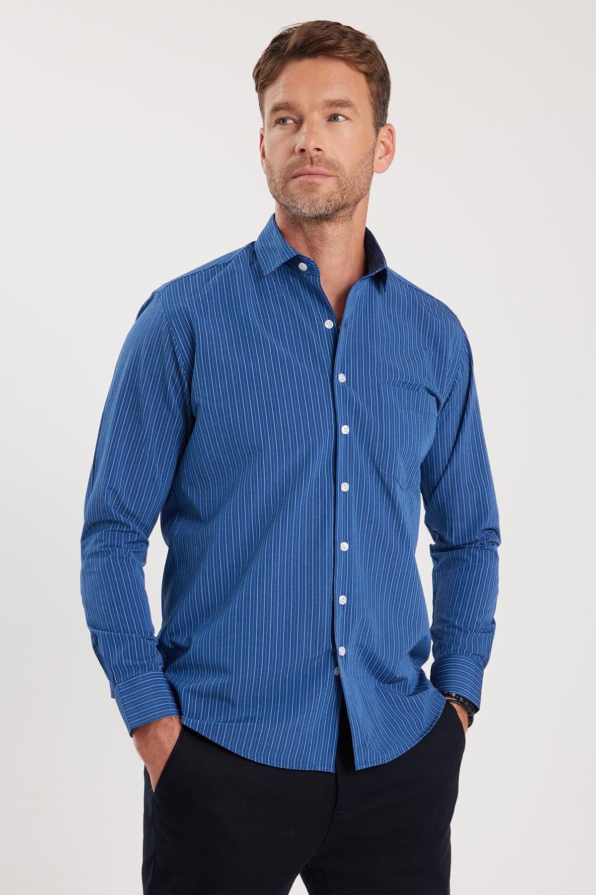 Erkek Regular Fit Klasik Kesim Pamuklu Tek Cepli Armürlü Saks Mavi Gömlek Erkek Regular Fit Klasik Kesim Pamuklu Tek Cepli Armürlü Saks Mavi Gömlek KL220028-412 2XL