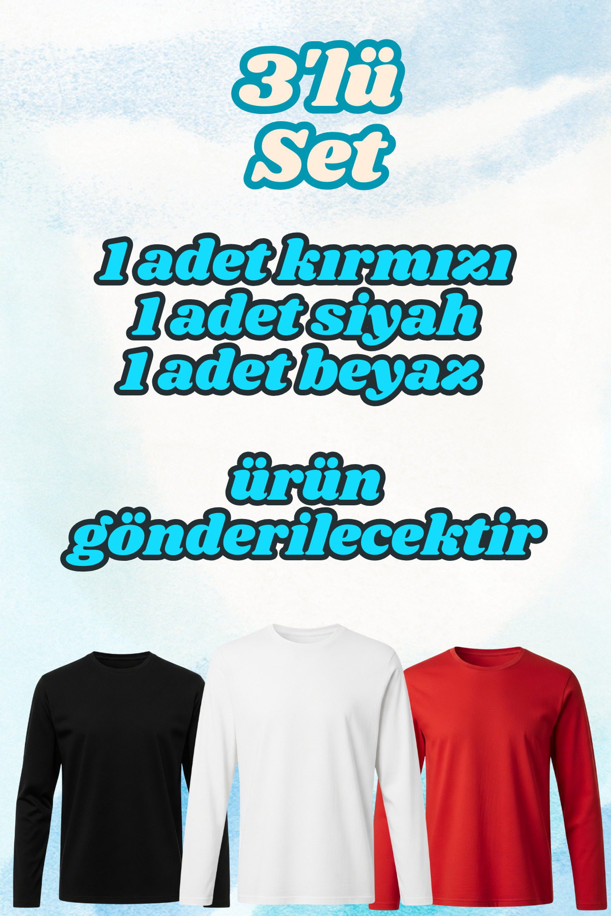 Çocuk Uzun Kol Tişört - Kız Erkek Çocuk 3'lü Set Basic Mevsimlik Suprem Uzun Kollu Tshirt Badi Çocuk Uzun Kol Tişört - Kız Erkek Çocuk 3'lü Set Basic Mevsimlik Suprem Uzun Kollu Tshirt Badi D0501005 13 Yaş