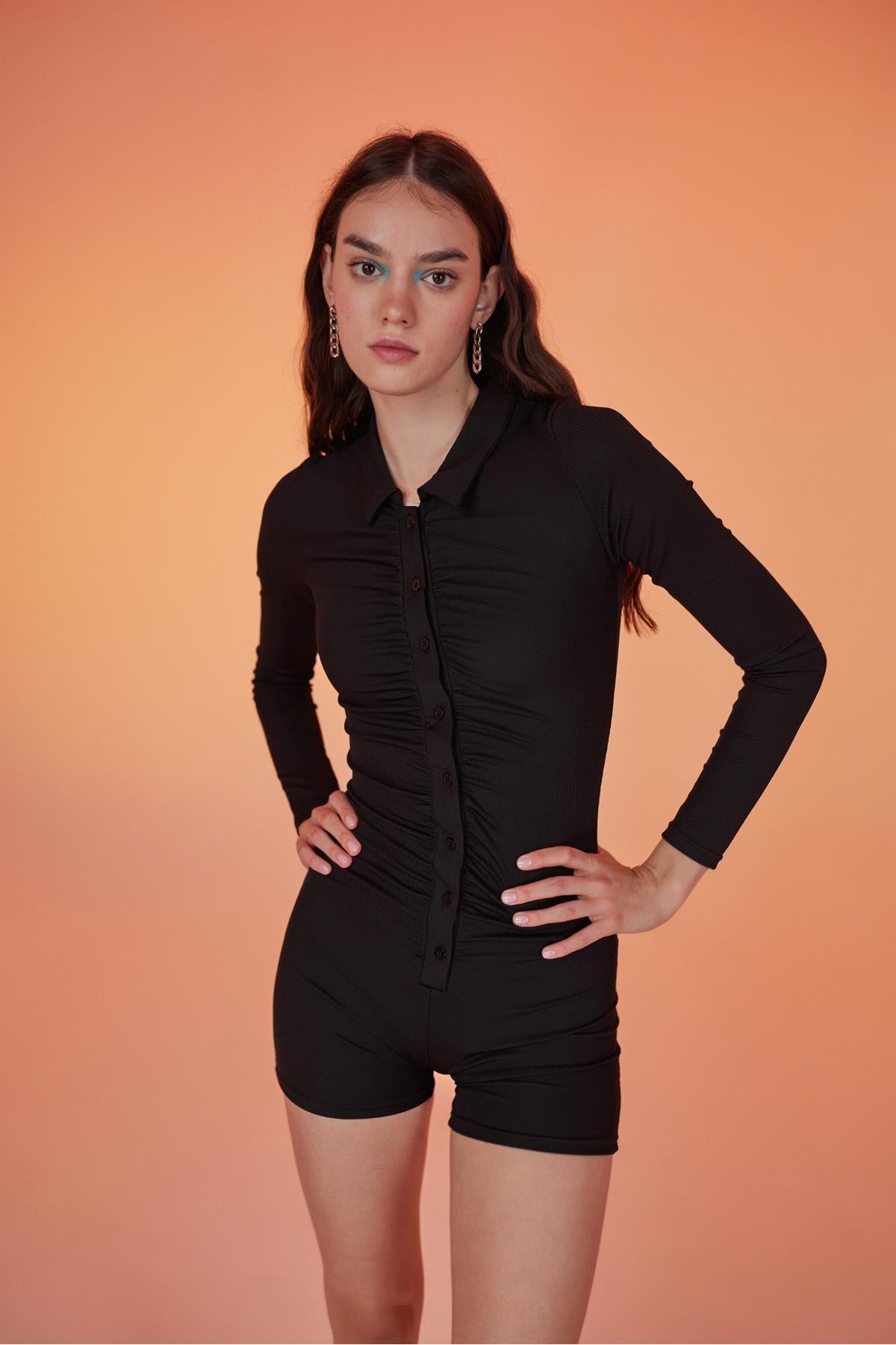 Fitilli Uzun Kollu Kısa Tulum Romper Fitilli Uzun Kollu Kısa Tulum Romper uzunkoltulum L