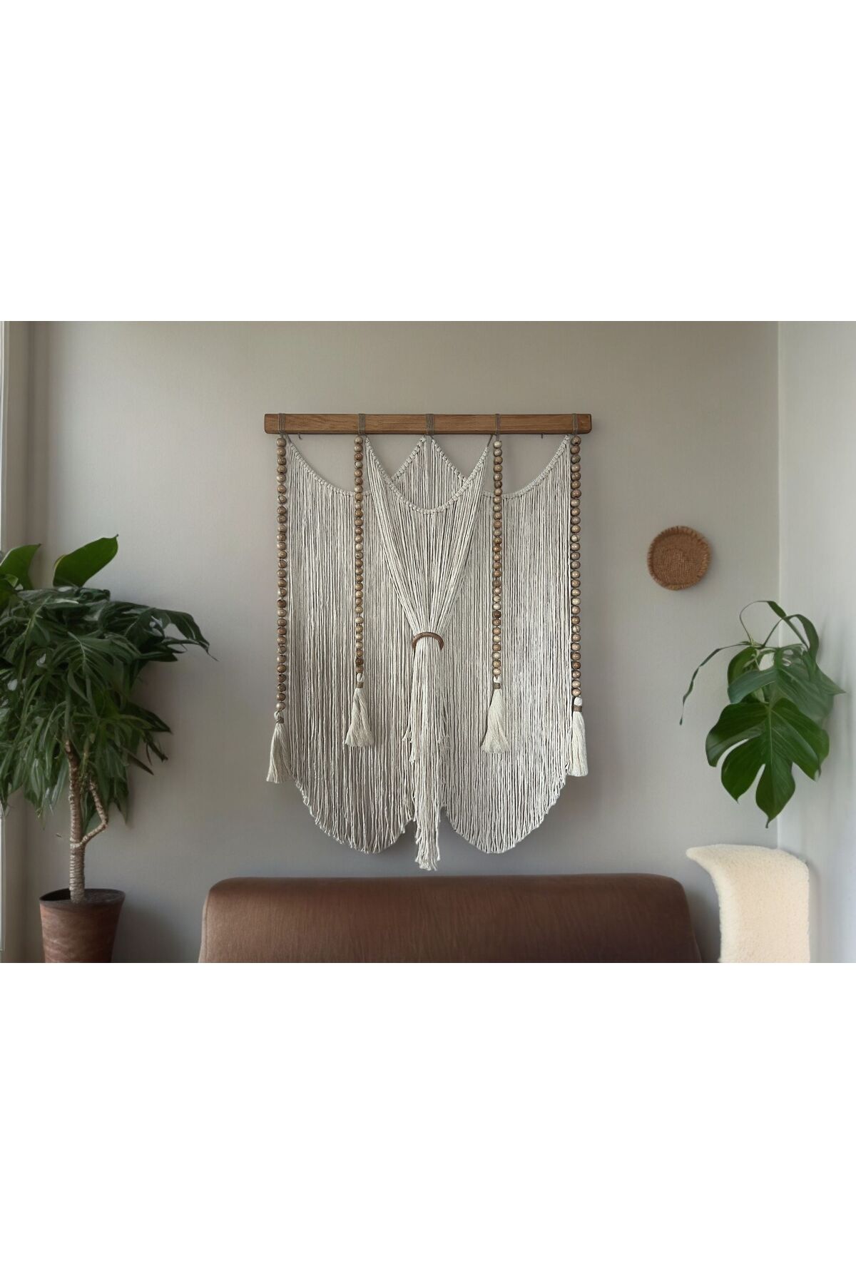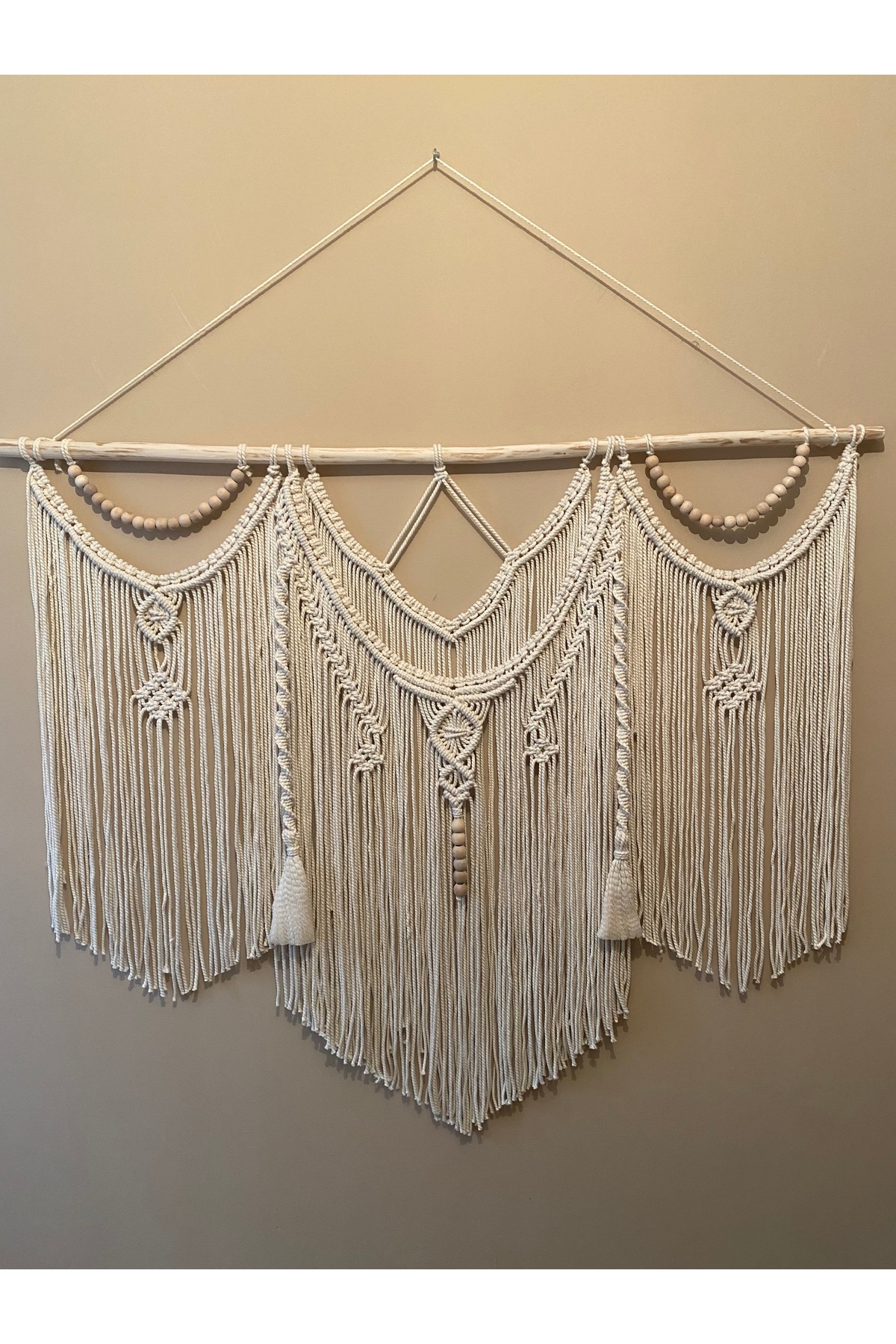 MODERN MAKROME DUVAR SÜSÜ- KREM RENKLİ BOHEM DUVAR DEKORASYONU- YATAK BAŞLIĞI- BONCUKLU MAKRAME MODERN MAKROME DUVAR SÜSÜ- KREM RENKLİ BOHEM DUVAR DEKORASYONU- YATAK BAŞLIĞI- BONCUKLU MAKRAME KIR EVİ BONCUKLU 70 x 48