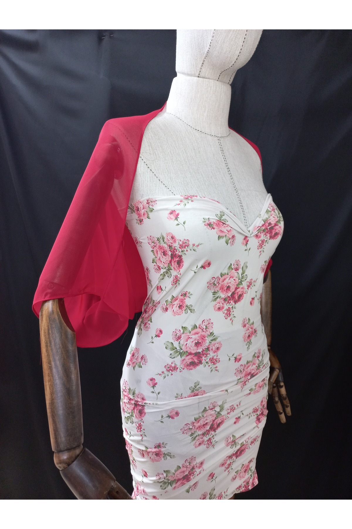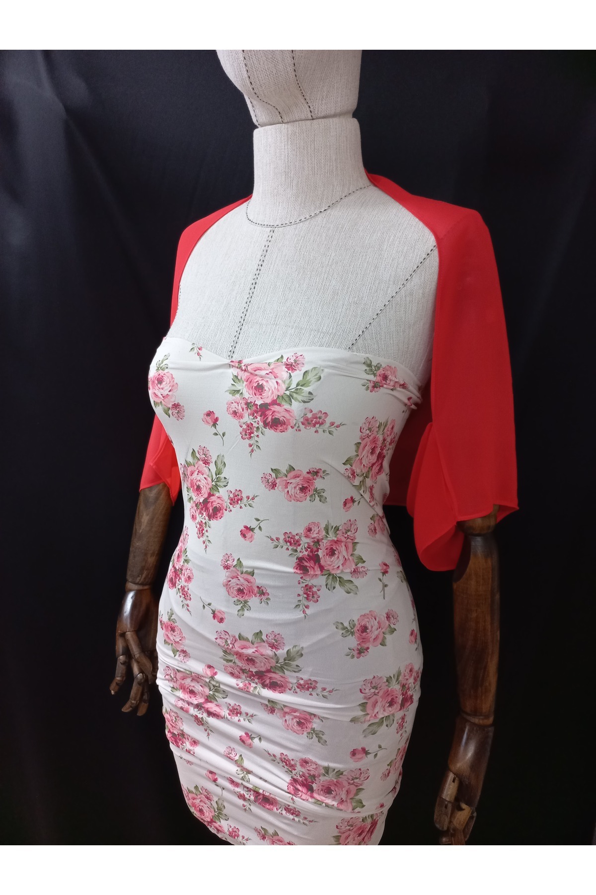 Rani boyundan düğmeli şifon abiye gelin şalı kırmızı Rani boyundan düğmeli şifon abiye gelin şalı kırmızı 00379 تک سایز