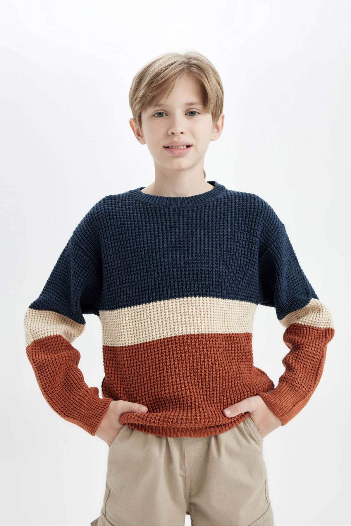Erkek Çocuk Bisiklet Yaka Renk Bloklu Triko Kazak C3137A824WN Erkek Çocuk Bisiklet Yaka Renk Bloklu Triko Kazak C3137A824WN 13-14 Yaş