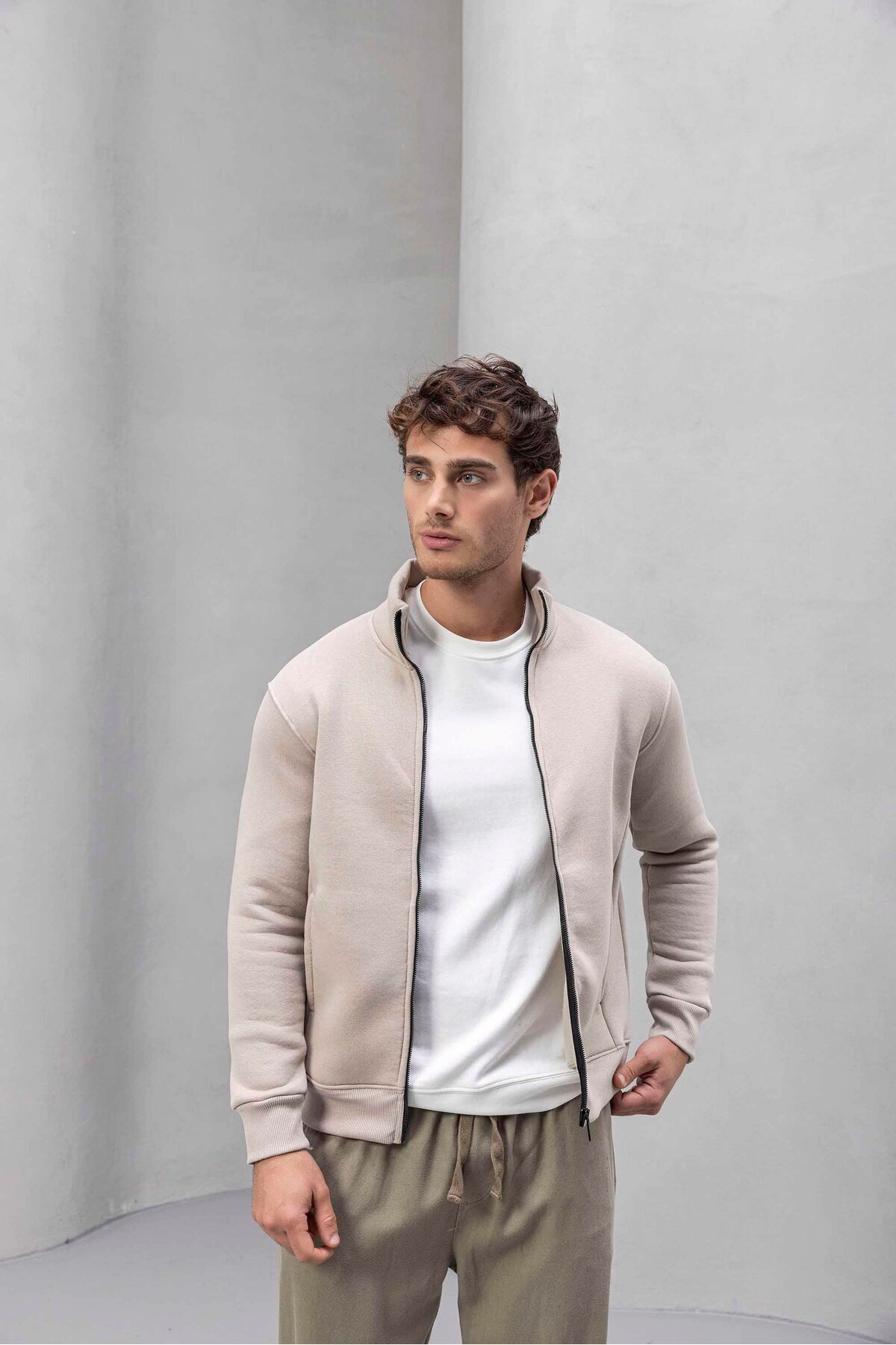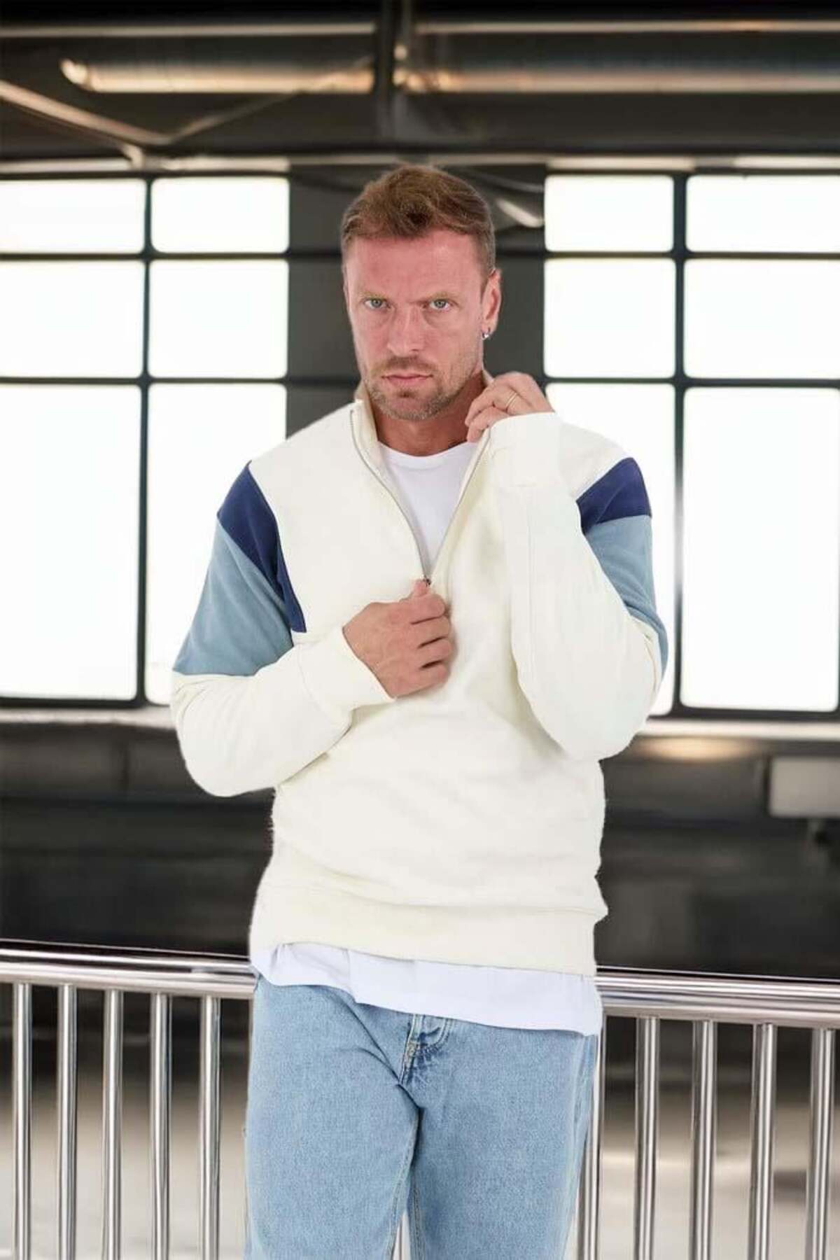 Oversize Erkek Kolları Garnili Selanik Örme Erkek Sweatshirt - Ekru Oversize Erkek Kolları Garnili Selanik Örme Erkek Sweatshirt - Ekru SS10021 XL