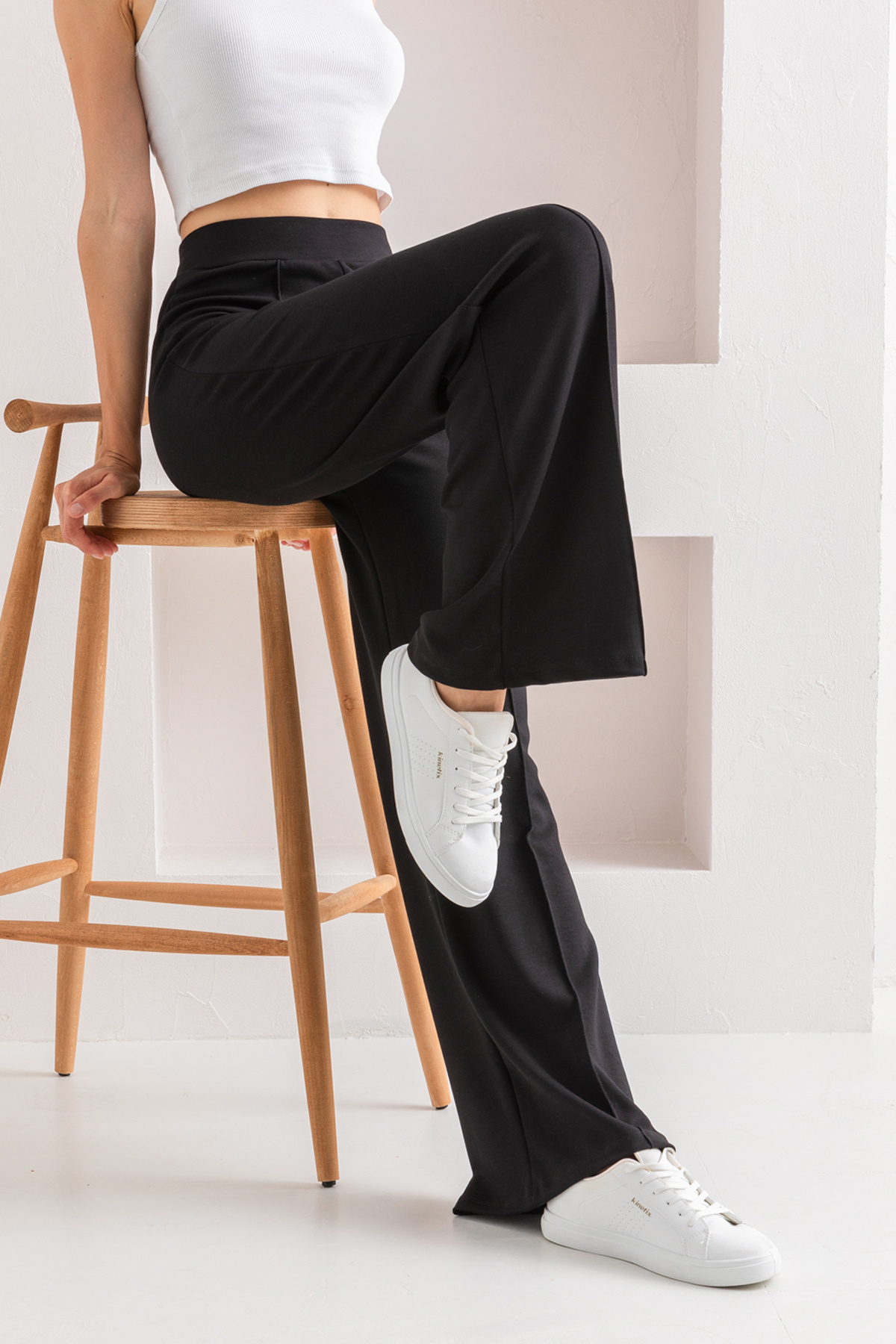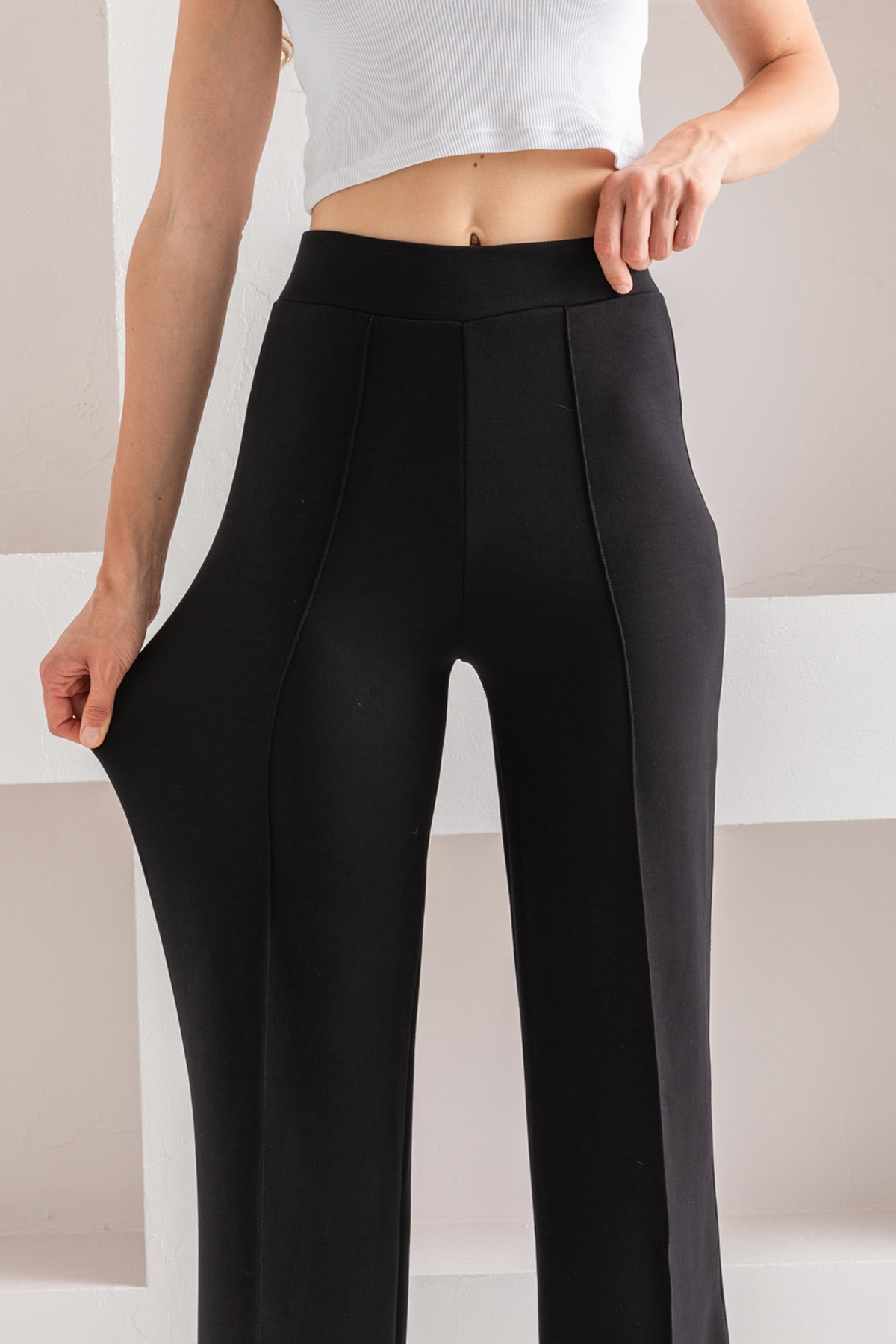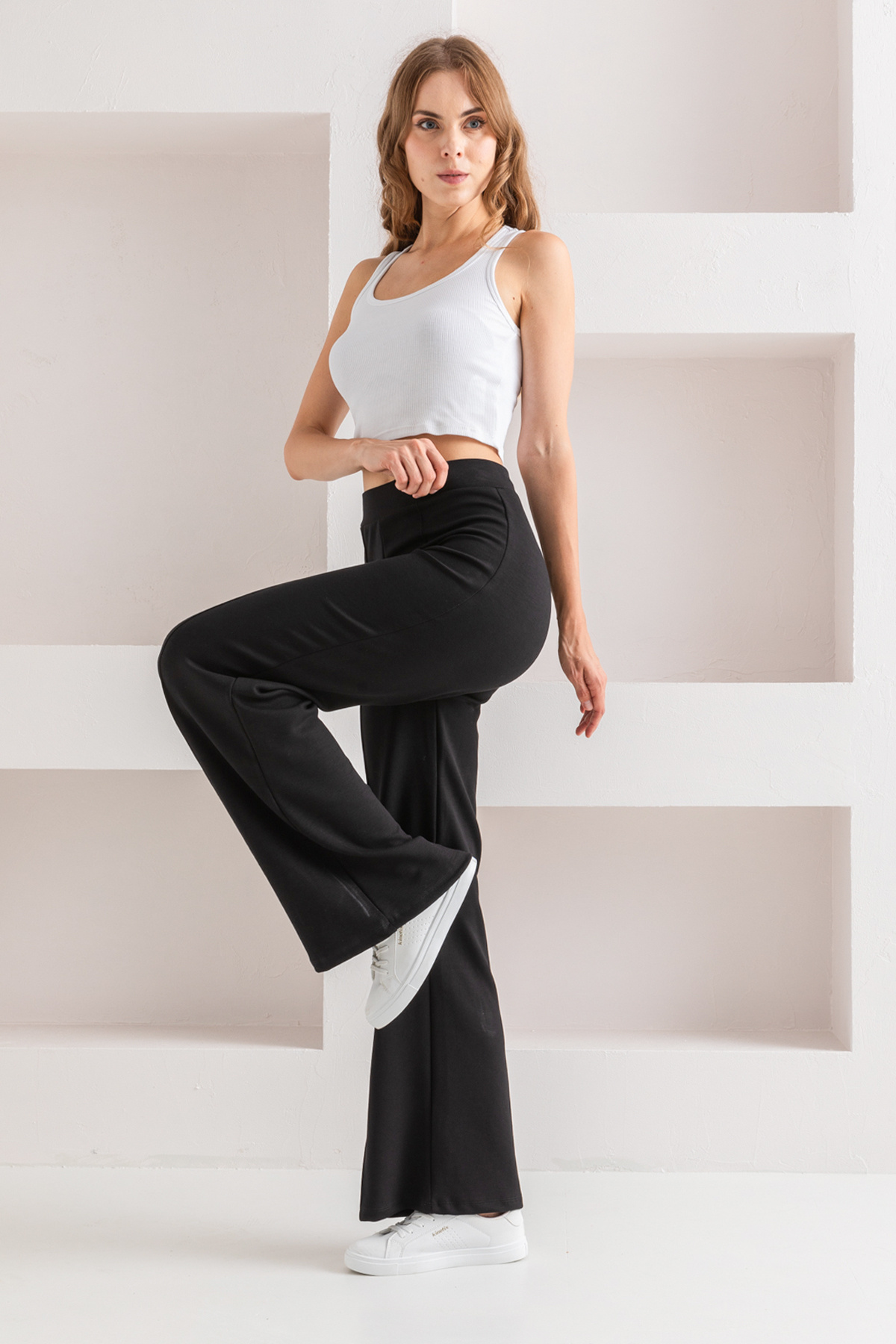 Kadın Siyah Yüksek Bel Toparlayıcı Önü Nervürlü Geniş Kalıp Bol Paça Modal Kumaş Tayt Pantolon Kadın Siyah Yüksek Bel Toparlayıcı Önü Nervürlü Geniş Kalıp Bol Paça Modal Kumaş Tayt Pantolon CNR-MDL-001 3XL