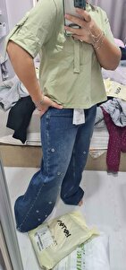 Geniş Paça Kot Pantolon Kuşgözü Detaylı Normal Bel Pamuklu - Wide Leg Jeans Geniş Paça Kot Pantolon Kuşgözü Detaylı Normal Bel Pamuklu - Wide Leg Jeans 5WAL40102MD 29/32