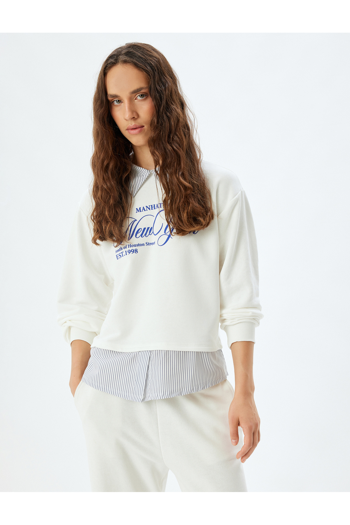 Kolej Baskılı Gömlek Yaka Oversize Sweatshirt Kolej Baskılı Gömlek Yaka Oversize Sweatshirt 5WAL10449IK XL