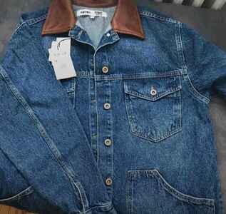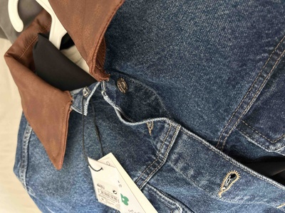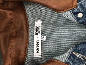 X Zeynep Bastık - Oversize Uzun Kot Ceket Suni Deri Yaka X Zeynep Bastık - Oversize Uzun Kot Ceket Suni Deri Yaka 5WAL50057MD L