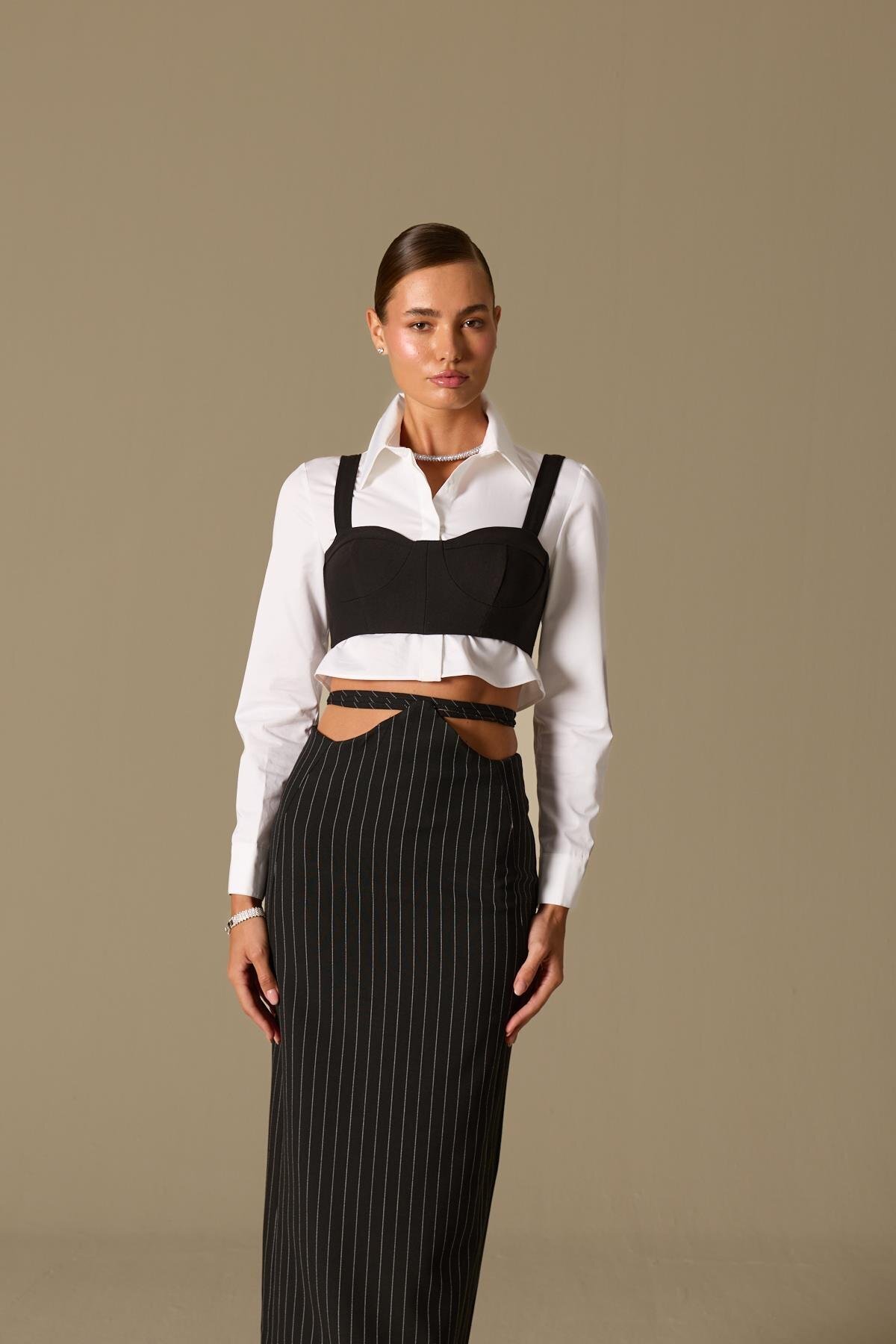 City Vibes Bel Detaylı Maxi Boy Çizgili Etek Siyah City Vibes Bel Detaylı Maxi Boy Çizgili Etek Siyah 24W8403 L