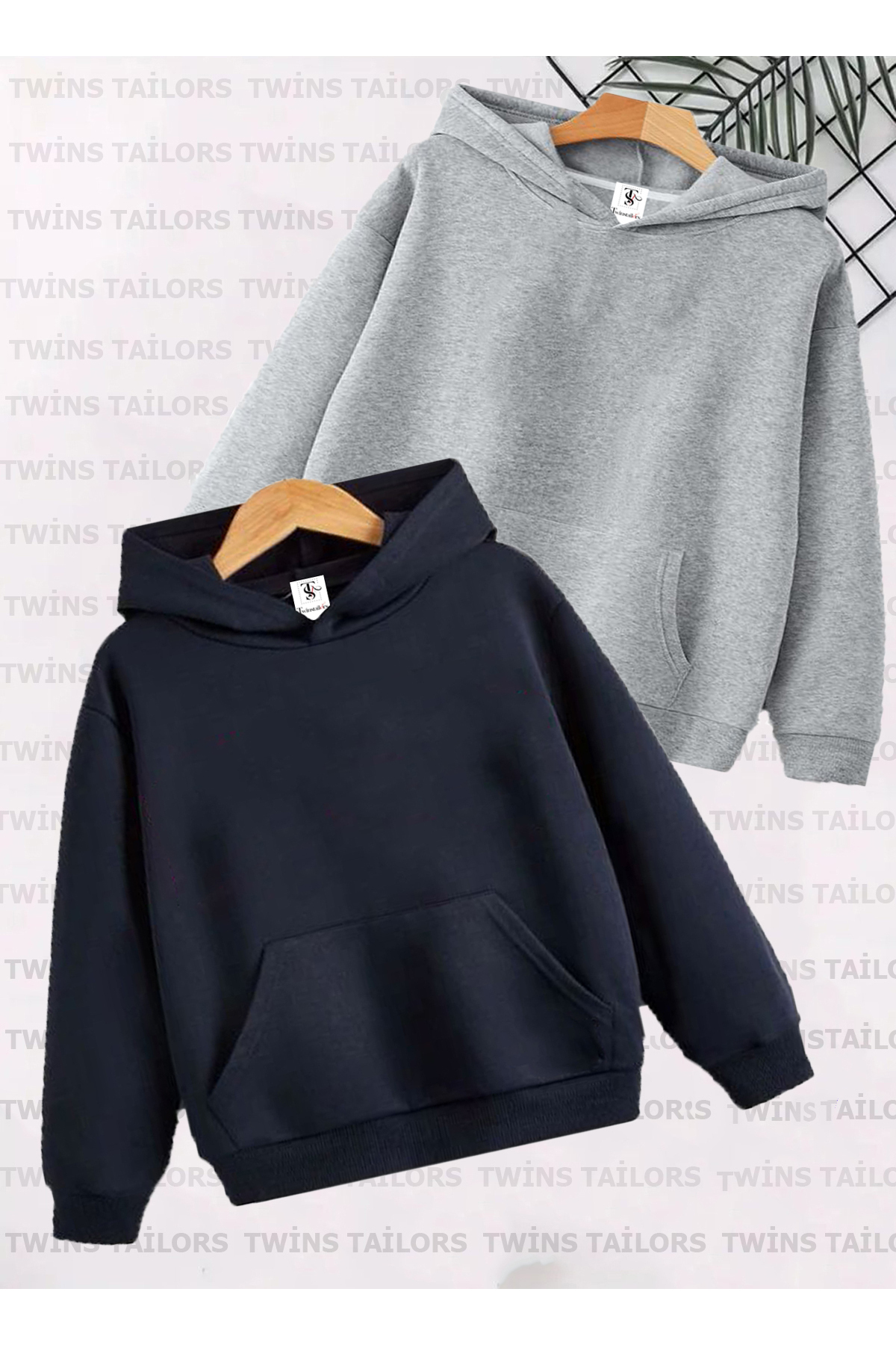 Baskısız İçi Polarlı 2'Li Paket Unisex Siyah-Gri Kapüşonlu Çocuk Okul Sweatshirt Baskısız İçi Polarlı 2'Li Paket Unisex Siyah-Gri Kapüşonlu Çocuk Okul Sweatshirt backtcsschll1213212 24-36 Ay