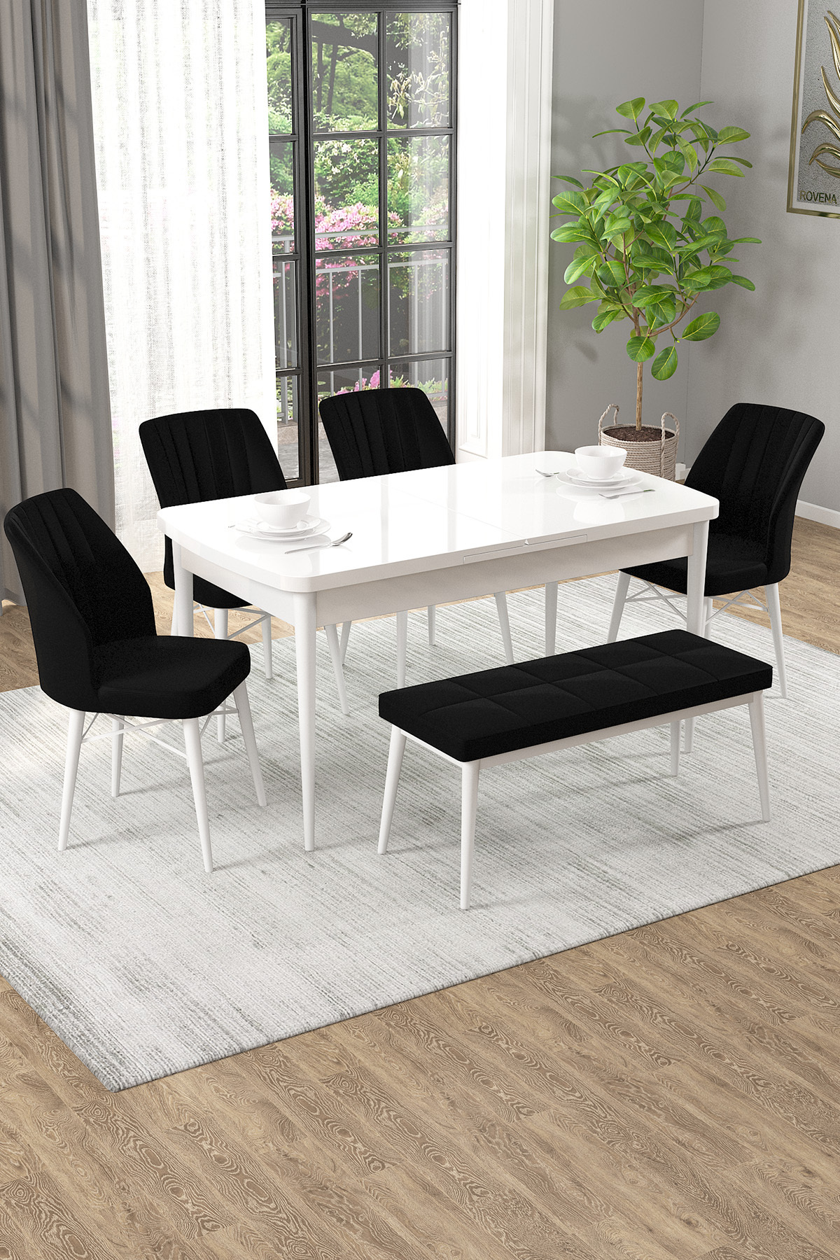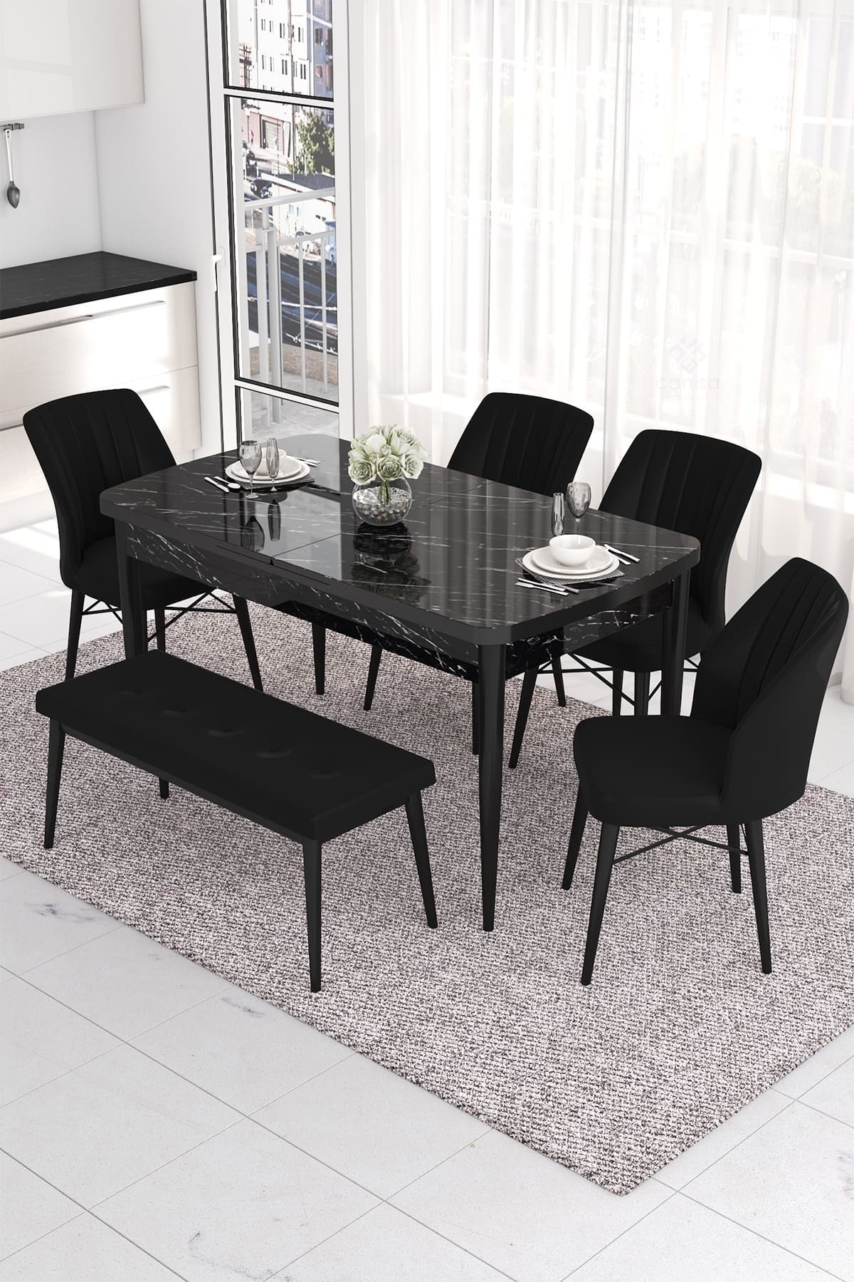 Eva Serisi 80x132 Açılabilir Mdf Mutfak Masası Takımı Siyah Mermer Masa 4 Siyah Sandalye 1 Bench Eva Serisi 80x132 Açılabilir Mdf Mutfak Masası Takımı Siyah Mermer Masa 4 Siyah Sandalye 1 Bench EVA BEYAZ BENCHLİ تک سایز