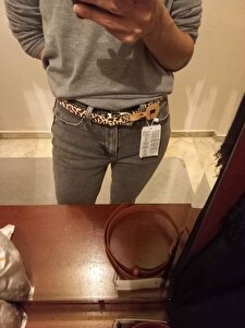 Leopar desenli deri kemer Leopar desenli deri kemer 77065990 XS-S