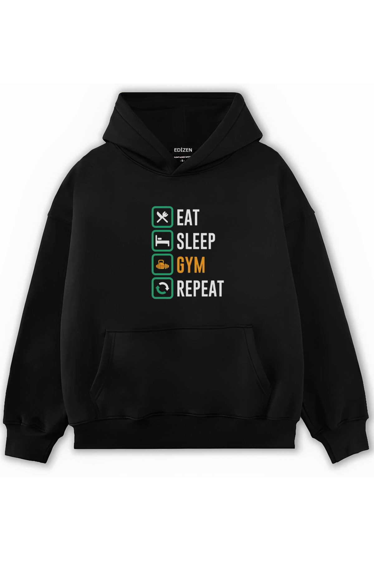 The Gym Ön ve Arka Baskılı 3 İplik Geniş Kalıp Siyah Kapüşonlu Sweatshirt The Gym Ön ve Arka Baskılı 3 İplik Geniş Kalıp Siyah Kapüşonlu Sweatshirt TheGymHoodie01240 XL