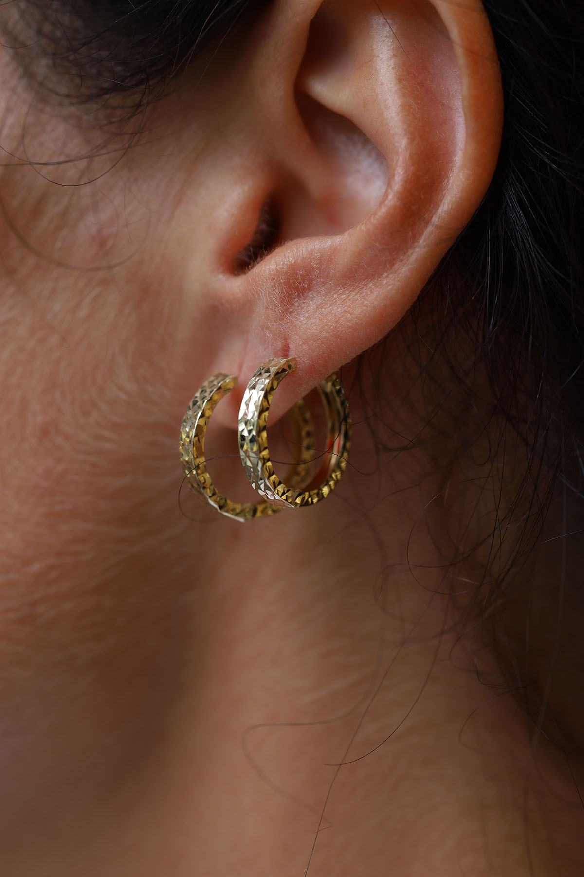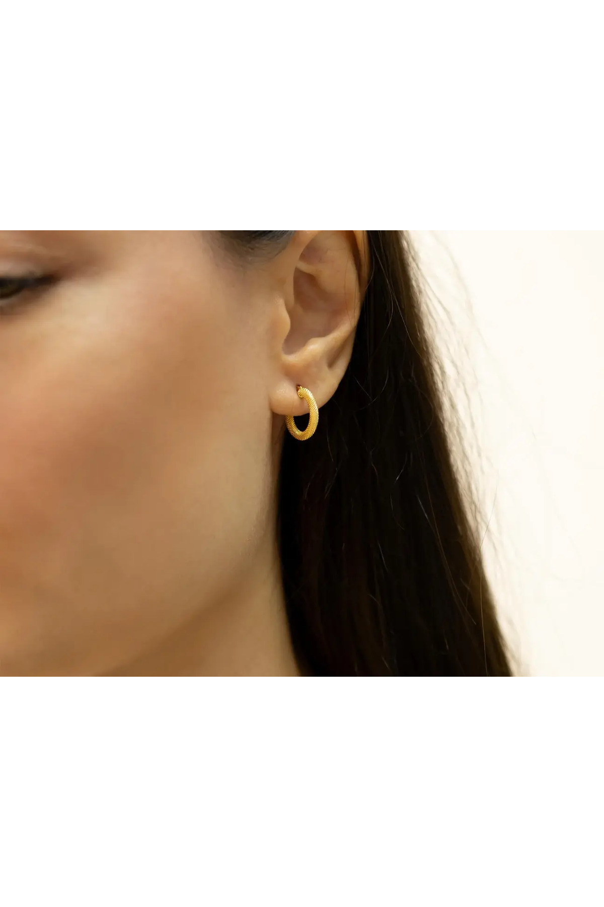 14 Ayar Altın Işıltılı Halka Küpe 14 Ayar Altın Işıltılı Halka Küpe KP19586 تک سایز