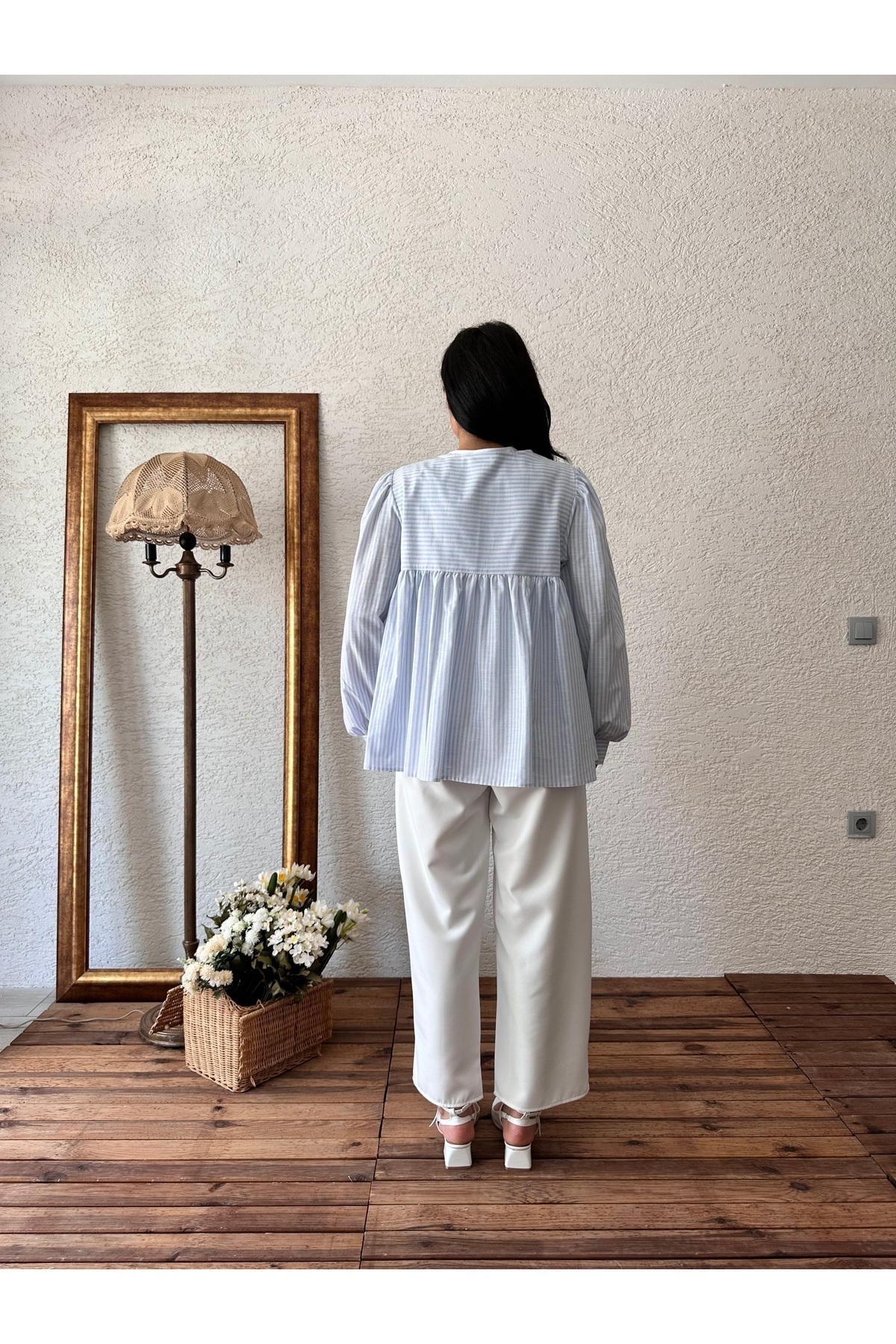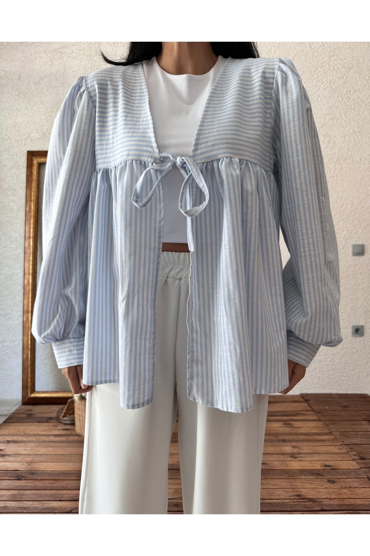 Mavi Bağlamalı Çizgili Bluz Mavi Bağlamalı Çizgili Bluz KCGM12177 Standart