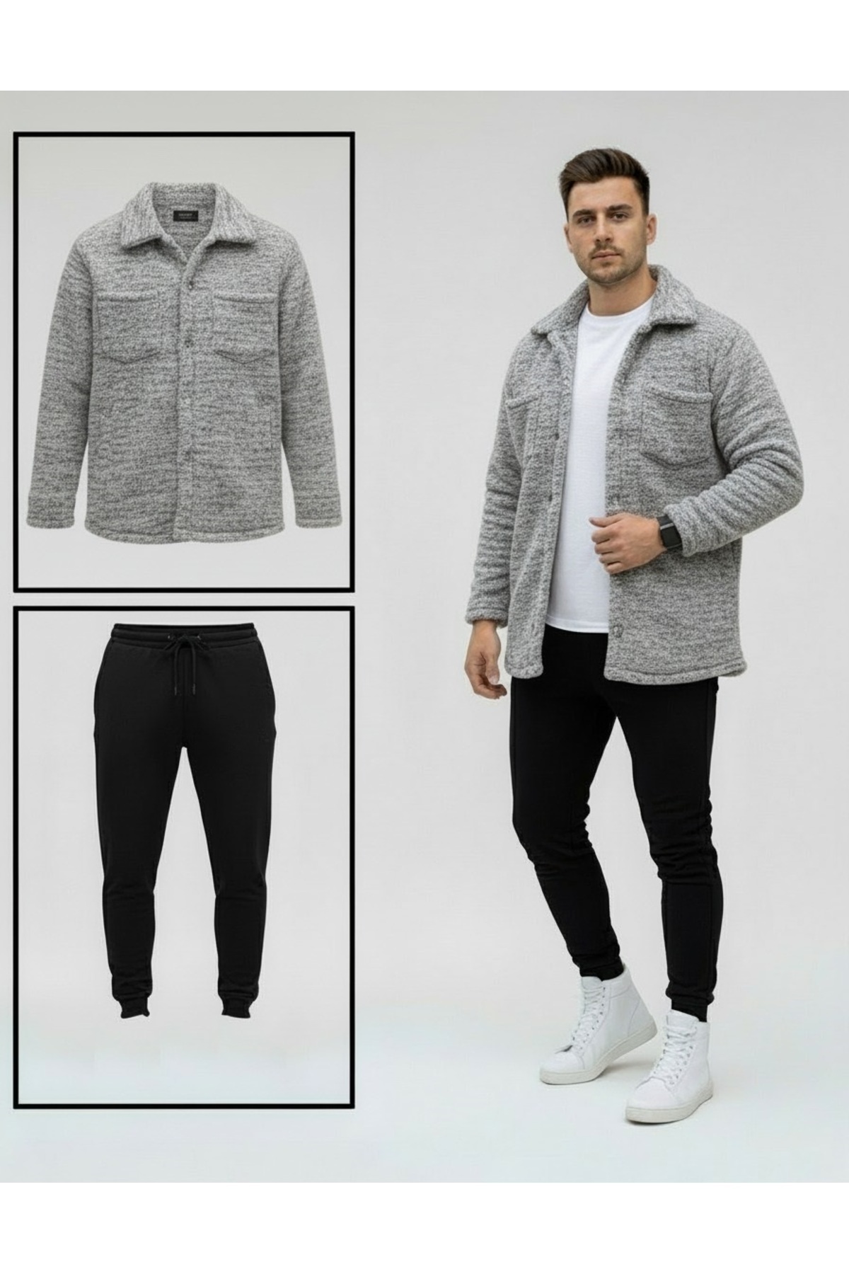 Unisex Pelüş Ceket Ve Siyah Eşofman Kombini Alt Üst Unisex Pelüş Ceket Ve Siyah Eşofman Kombini Alt Üst Mei9101 2XL