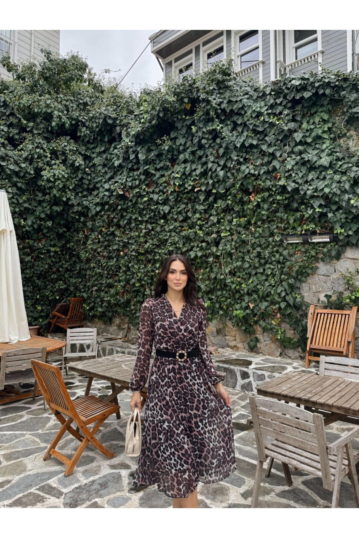 Leopar Desen Şifon Gömlek Elbise Leopar Desen Şifon Gömlek Elbise 1369 L