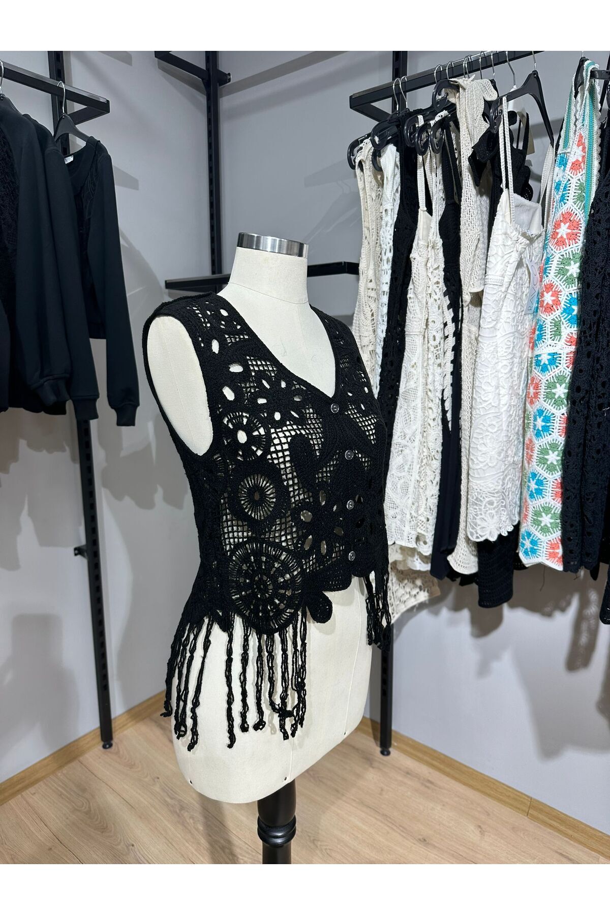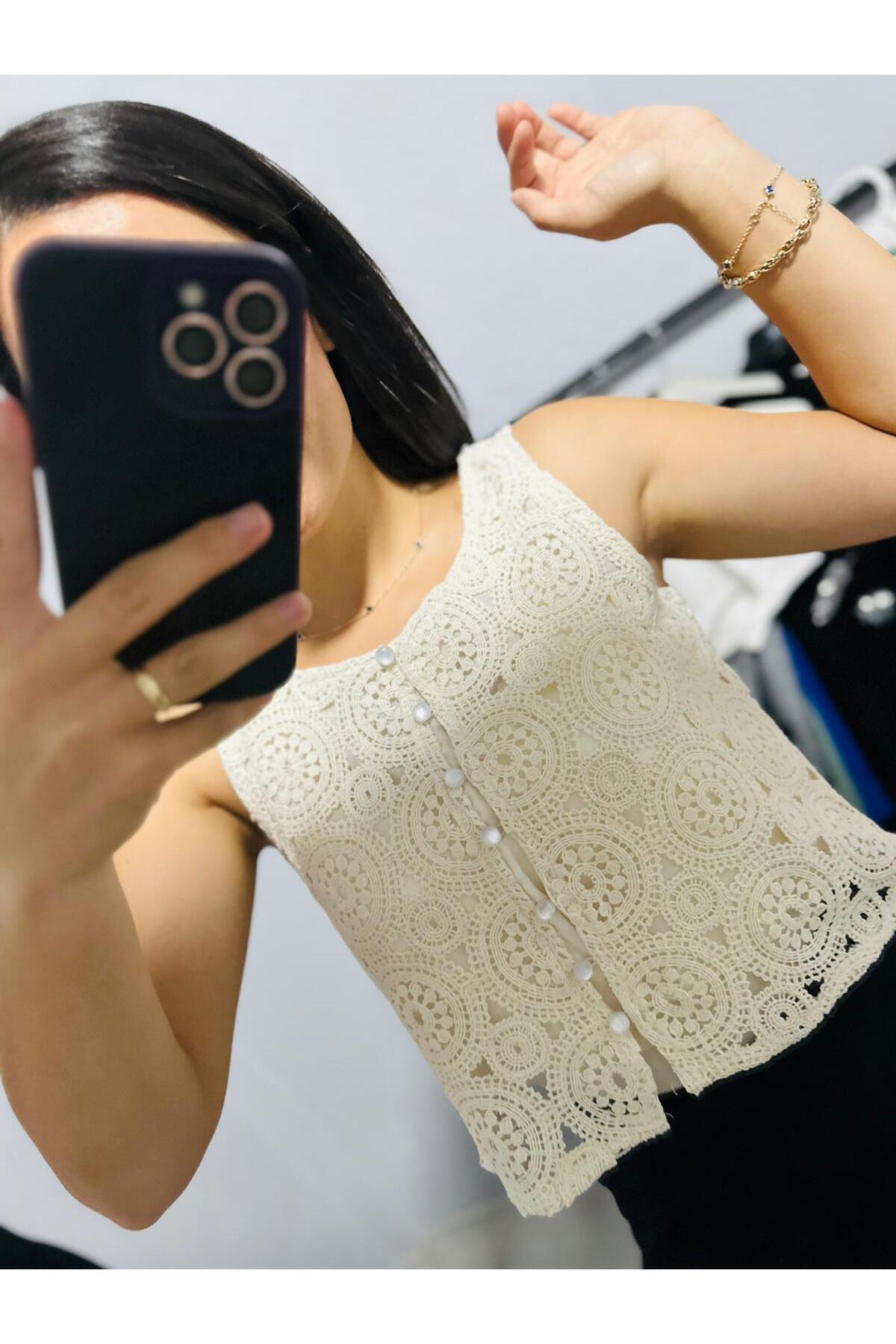 Kadın Düğmeli Dantelli Yelek Kadın Düğmeli Dantelli Yelek ngt4572 L