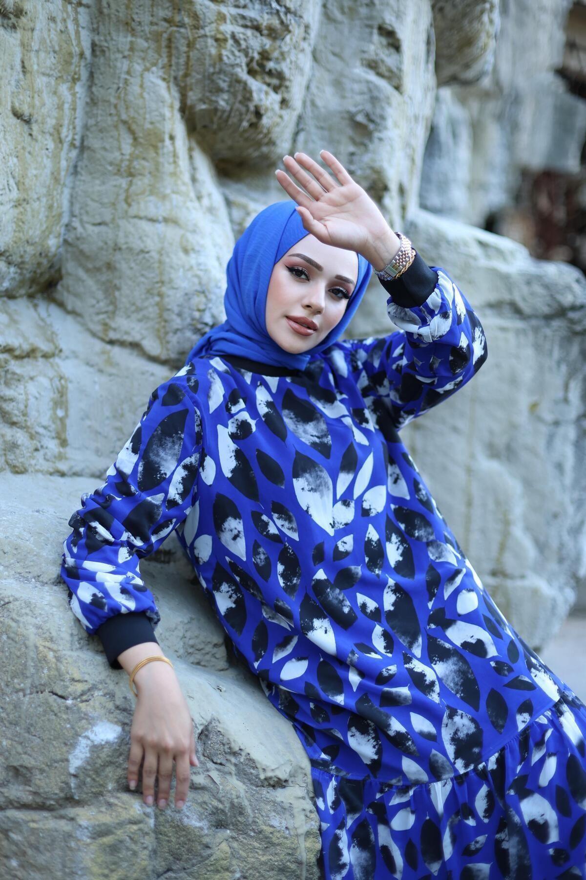 KADIN ASTARLI ŞİFON DESENLİ ELBİSE KADIN ASTARLI ŞİFON DESENLİ ELBİSE 6803 52