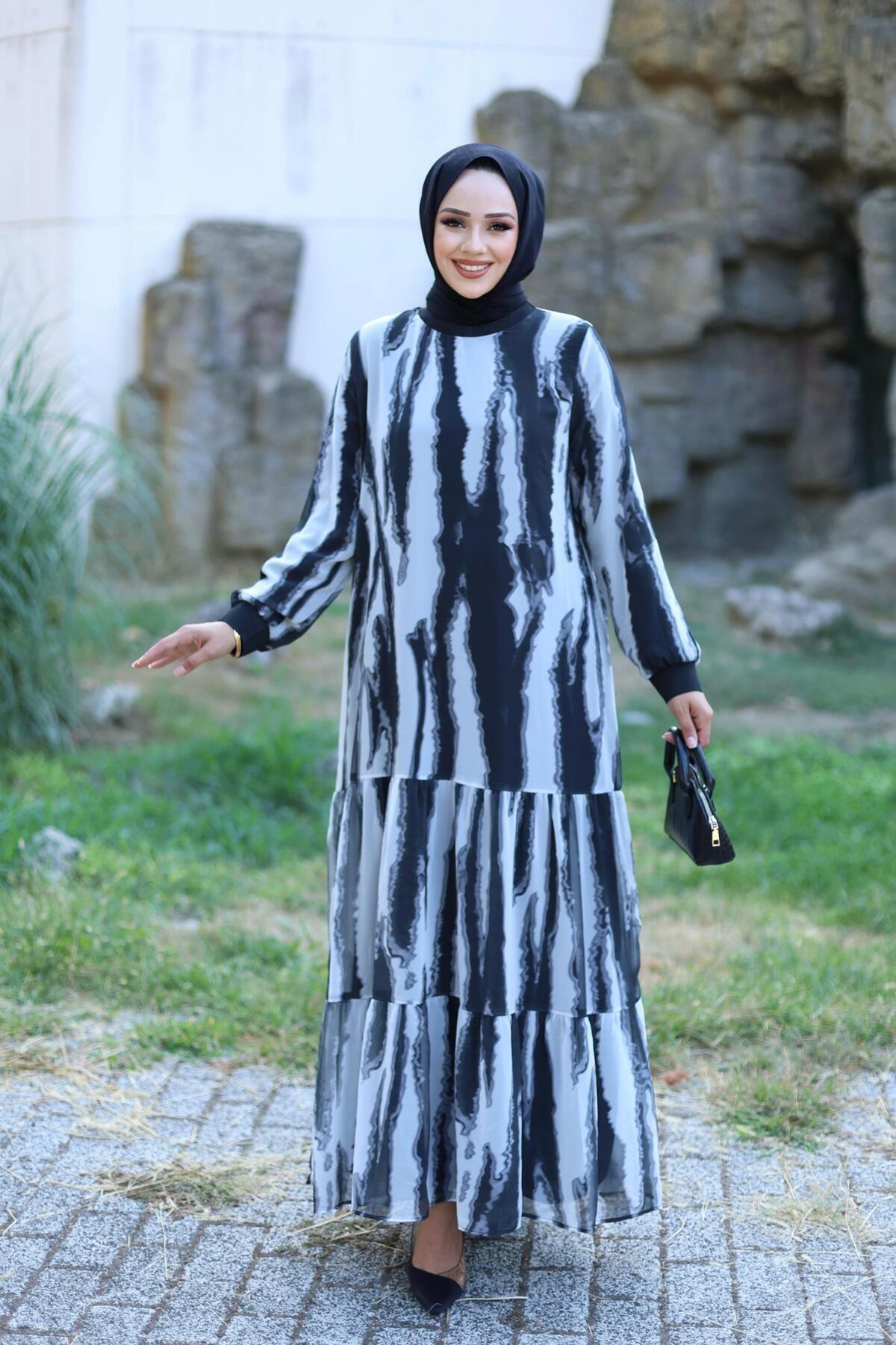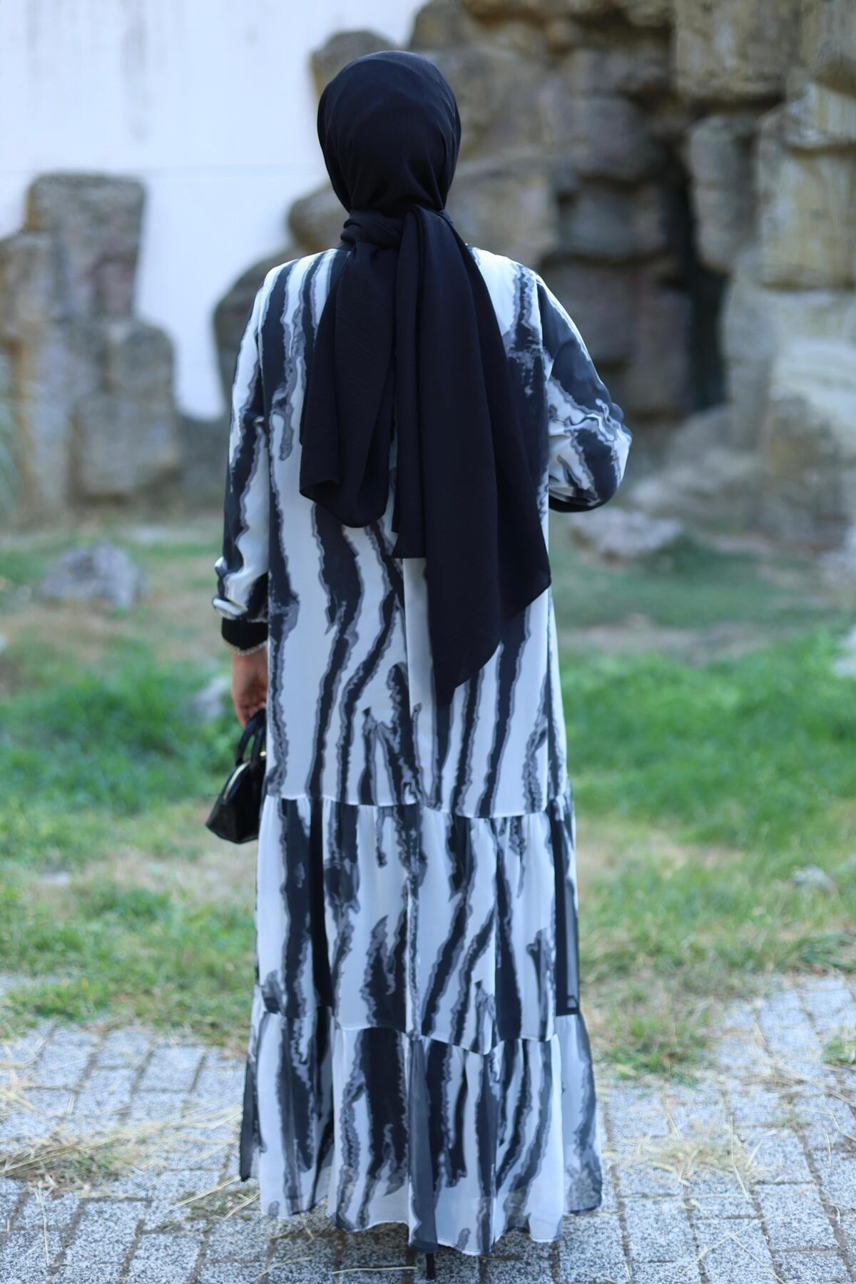 KADIN ASTARLI ŞİFON DESENLİ ELBİSE KADIN ASTARLI ŞİFON DESENLİ ELBİSE 6803 52