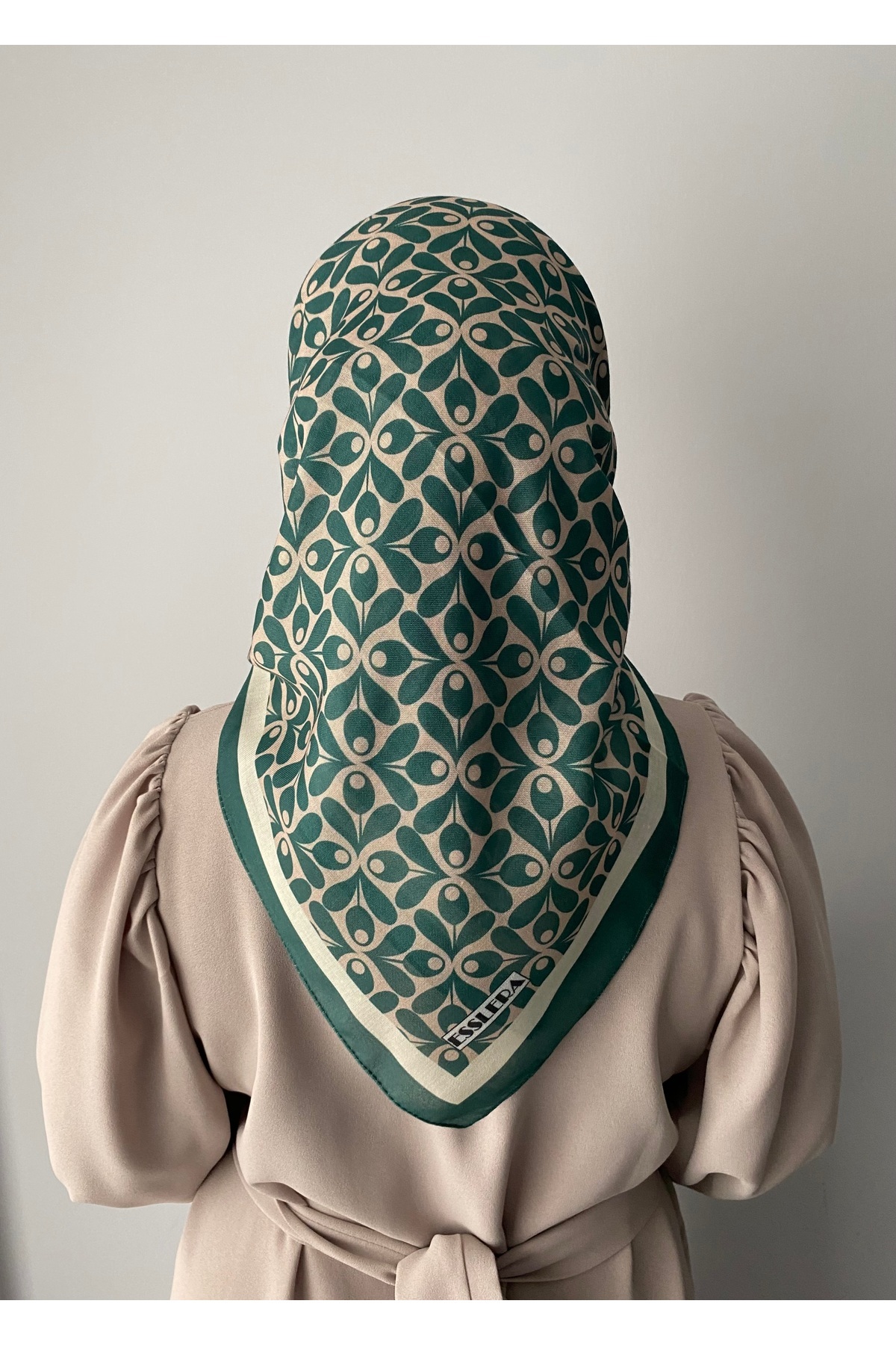 Çiçek Desenli Soft Eşarp Yeşil Çiçek Desenli Soft Eşarp Yeşil yaprakdesen 90x90