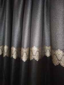 Pano Fon Perde Gri - Antrasit Altın Şeritli Tek Kanat Sık Pileli Jakarlı Parlak Pano Fon Perde Gri - Antrasit Altın Şeritli Tek Kanat Sık Pileli Jakarlı Parlak ykpfp-008 90 x 250