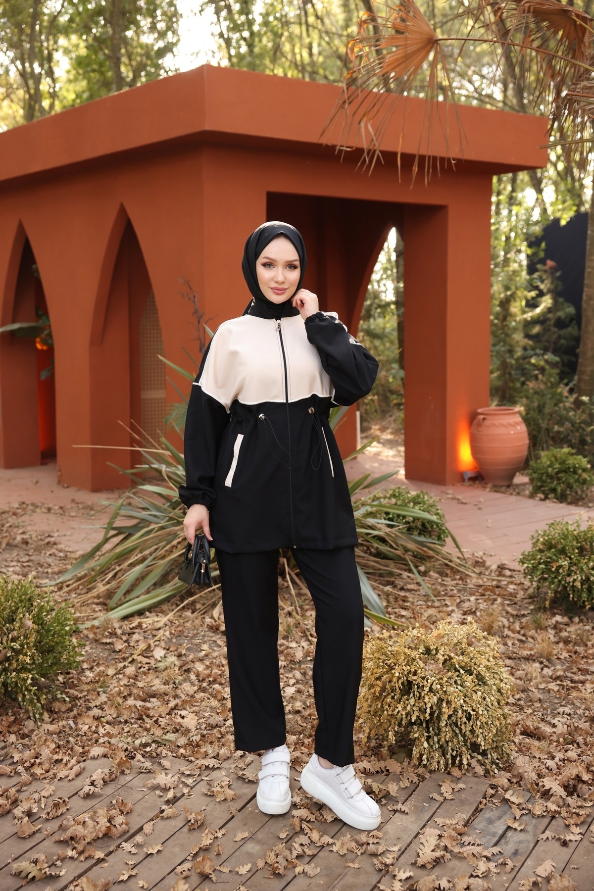 Fermuarlı Tesettür Eşofman Ikili Takımı Double Crep Kumaşlı Fermuarlı Tesettür Eşofman Ikili Takımı Double Crep Kumaşlı Z-452 L/XL