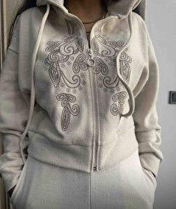 Ekru Önü Nakış İşlemeli Fermuarlı Kapüşonlu Selanik Hırka - 2434 Ekru Önü Nakış İşlemeli Fermuarlı Kapüşonlu Selanik Hırka - 2434 AMD2024A000034 XL