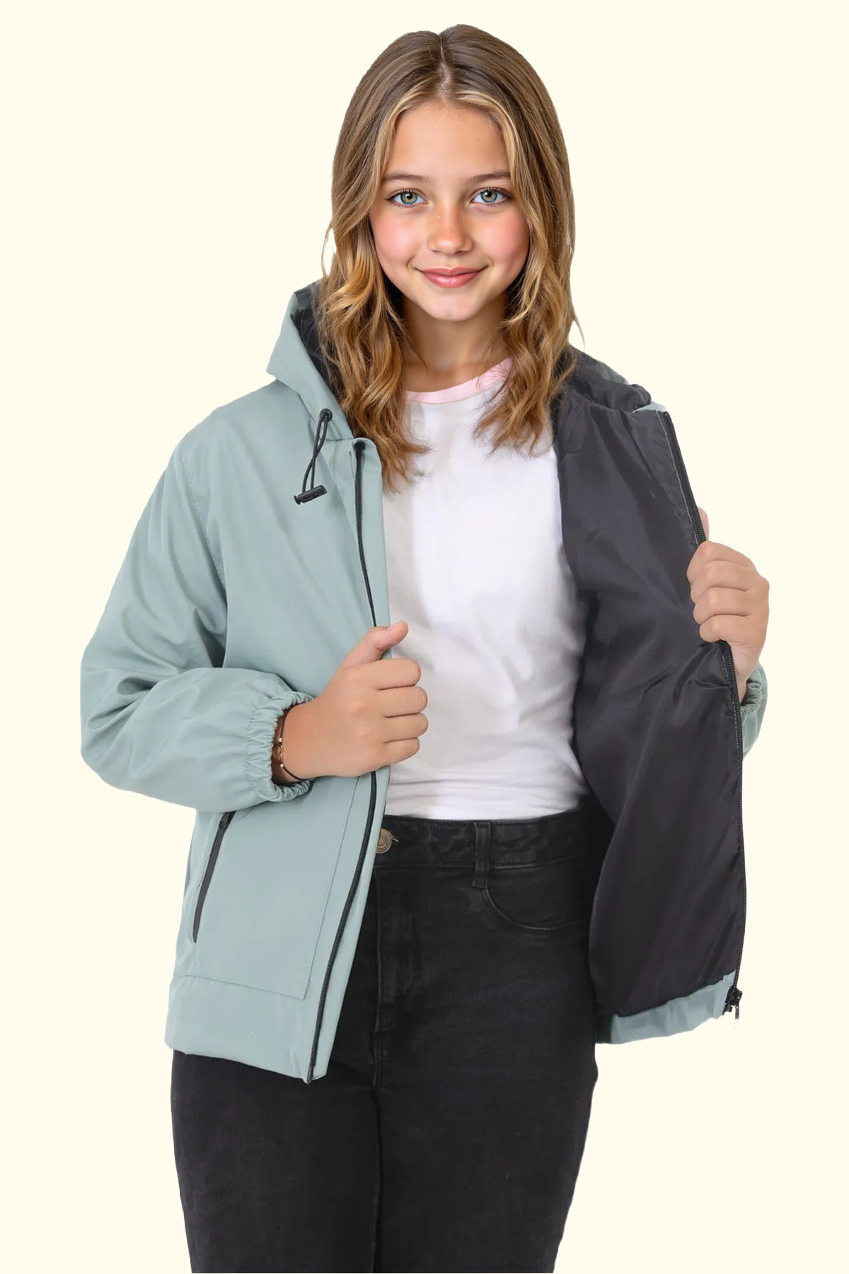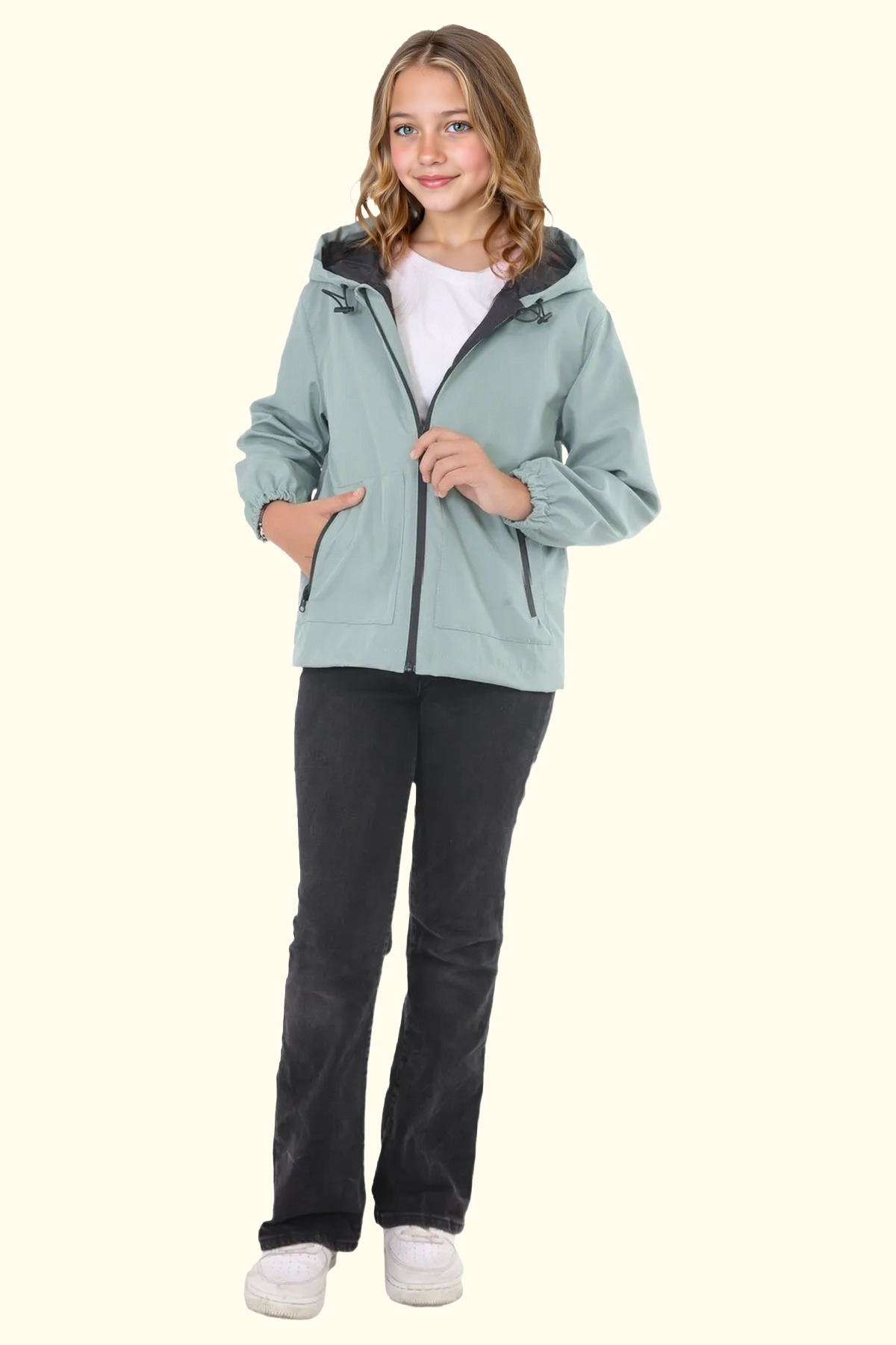 Kız Çocuk Mint Yeşili İçi Astarlı Su ve Rüzgar Geçirmez Kapüşonlu Çift Fermuarlı Cepli Yağmurluk Kız Çocuk Mint Yeşili İçi Astarlı Su ve Rüzgar Geçirmez Kapüşonlu Çift Fermuarlı Cepli Yağmurluk FST-Y-15-C-K 14-15 Yaş