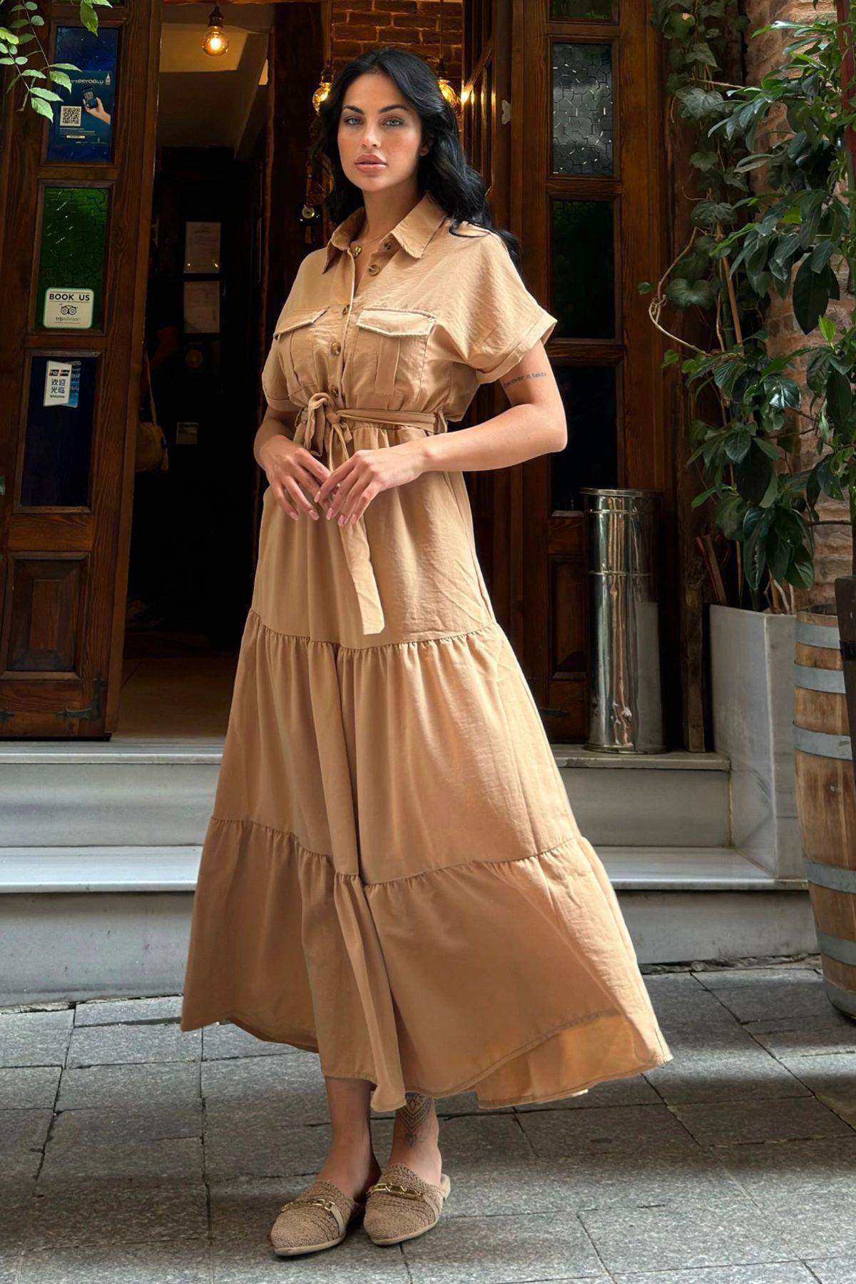 Camel Pliseli Cepli Maxi Kupra Elbise Camel Pliseli Cepli Maxi Kupra Elbise NY3336 42