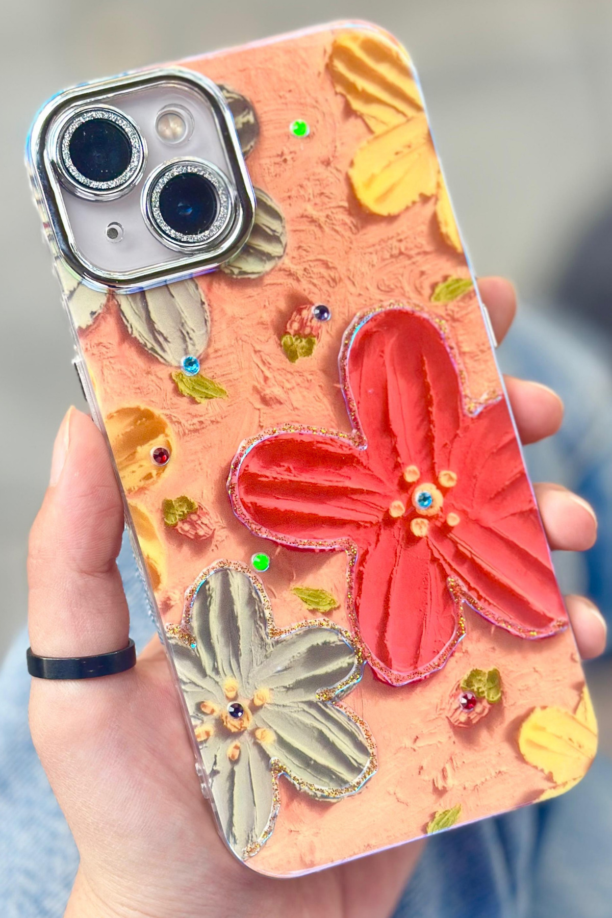 iPhone 13 Çiçek Desenli Kendinden Lens Korumalı Elektrokaplama Parlak Şık Hologramlı Paint Kılıf iPhone 13 Çiçek Desenli Kendinden Lens Korumalı Elektrokaplama Parlak Şık Hologramlı Paint Kılıf Paint6 تک سایز
