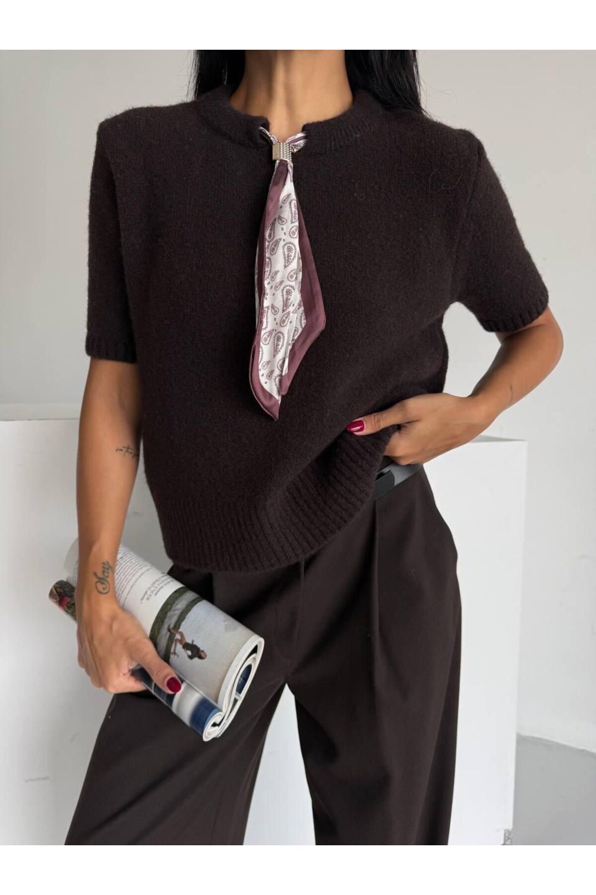 Leopar Fularlı Vizon Triko Kadın Hırka Leopar Fularlı Vizon Triko Kadın Hırka los0080 Standart